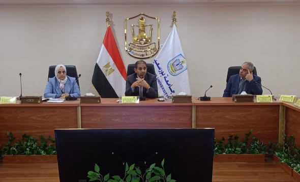 The University President reviewed the most notable achievements and activities of the past month, highlighting the university’s positive participation in the Egyptian–French Scientific and Academic Cooperation Day held in Paris, which opened new prospects for international collaboration and promising partnerships. He also referred to his recent meeting with the Governor of Port Said, noting the shared vision and agreement to work jointly to support the higher education and scientific research system in the governorate.