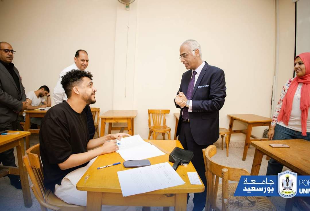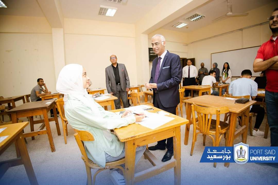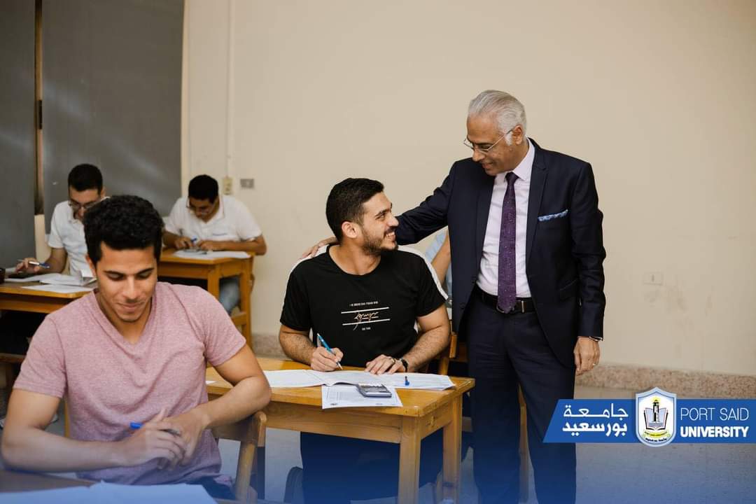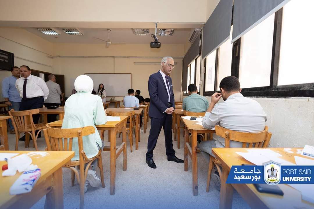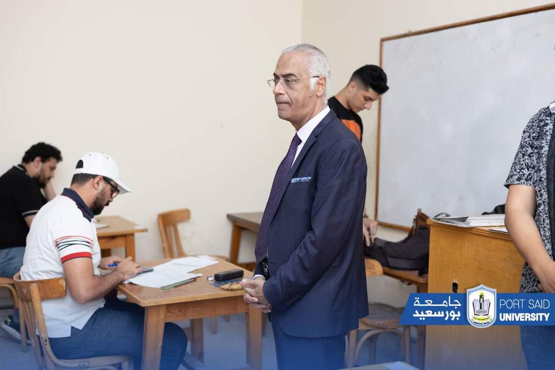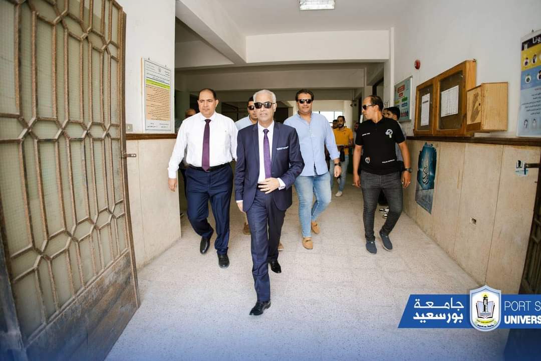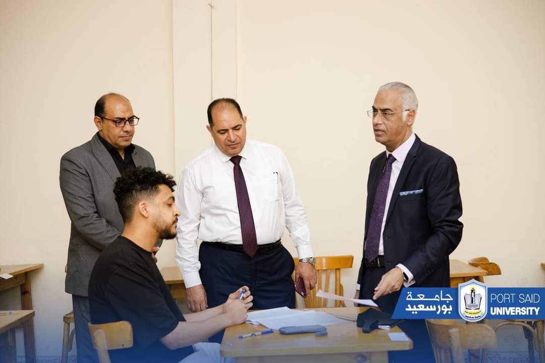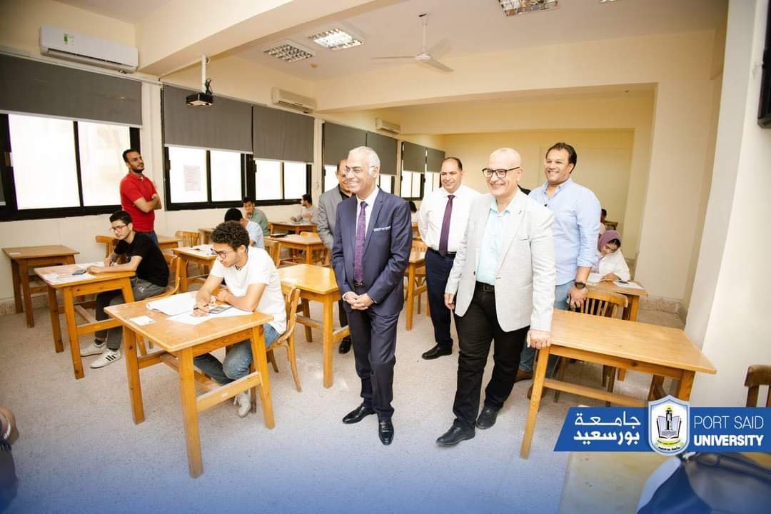 Prof. Dr Ayman Ibrahim, President of Port Said University, inspected the examination committees for the new programs (gas engineering / construction engineering) at the Faculty of Engineering in addition to the preparatory class at the Faculty of Engineering, East Port Said University. The visit was in the presence of Prof. Dr Taha Farrag, Dean of the Faculty of Engineering, Prof. DrRehab Farouk, Vice Dean for Postgraduate Studies and Research, Prof. Dr Ahmed Al-Hattab, Vice Dean for Environmental Affairs and Community Service, and Prof. Dr Sayed Galal, Coordinator of the Engineering Program at East Port Said University.