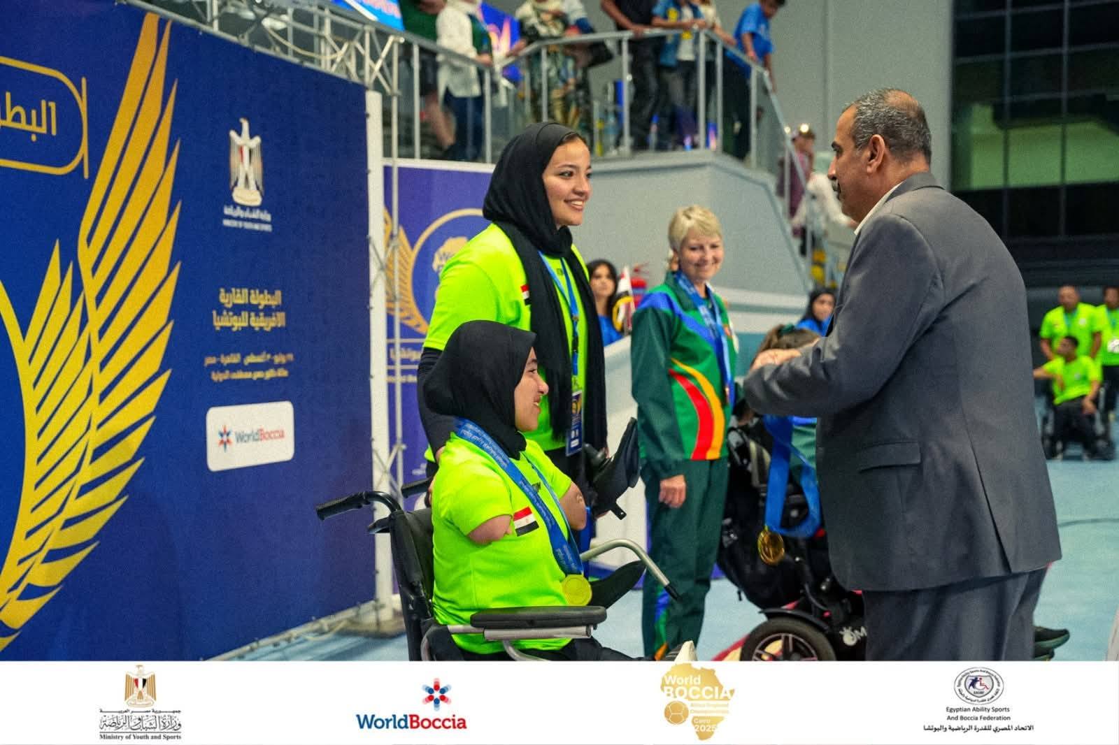 Prof. Dr. Sherif Saleh, President of the University, extended his sincere congratulations to Rahma Hesham, a second-year student at the Faculty of Commerce at Port Said University, on her well-deserved gold medal win in the BC3 Boccia competition at the African Championship, held at Hassan Mostafa Stadium from July 27 to August 4, with the participation of national teams from Egypt, Tunisia, Morocco, Namibia, Libya, and South Africa. Port Said participated in the organizing committee through: