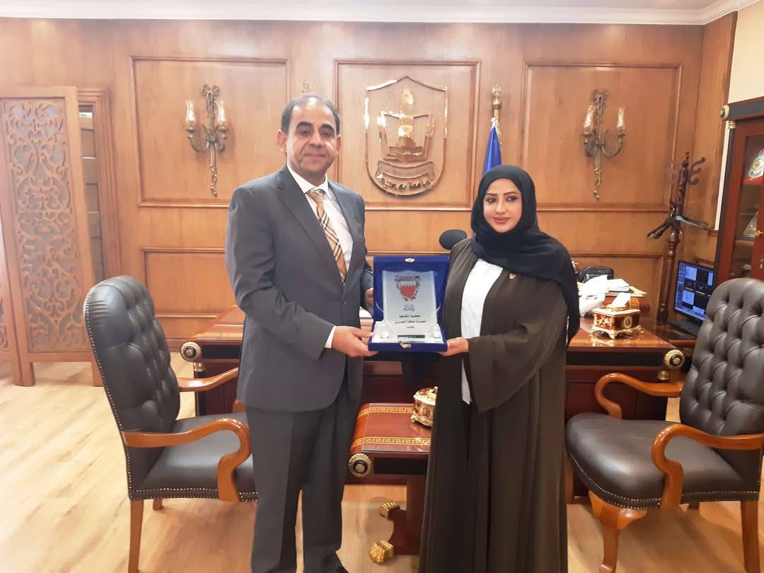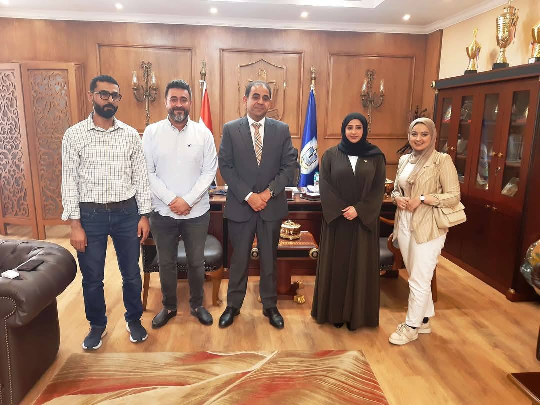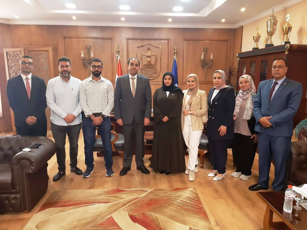 Prof. Sherif Saleh, President of the University, received Dr. Kholoud Rashid Matar, Cultural Counselor of the Embassy of the Kingdom of Bahrain in Cairo, and Mr. Mahmoud Aref, Academic Advisor at the Cultural Attaché of the Embassy of the Kingdom of Bahrain in Cairo. The visit was held on an official visit aimed at strengthening academic and cultural cooperation with the Cultural Attaché of the Kingdom of Bahrain and following up on the students from the Kingdom of Bahrain studying at Port Said University.