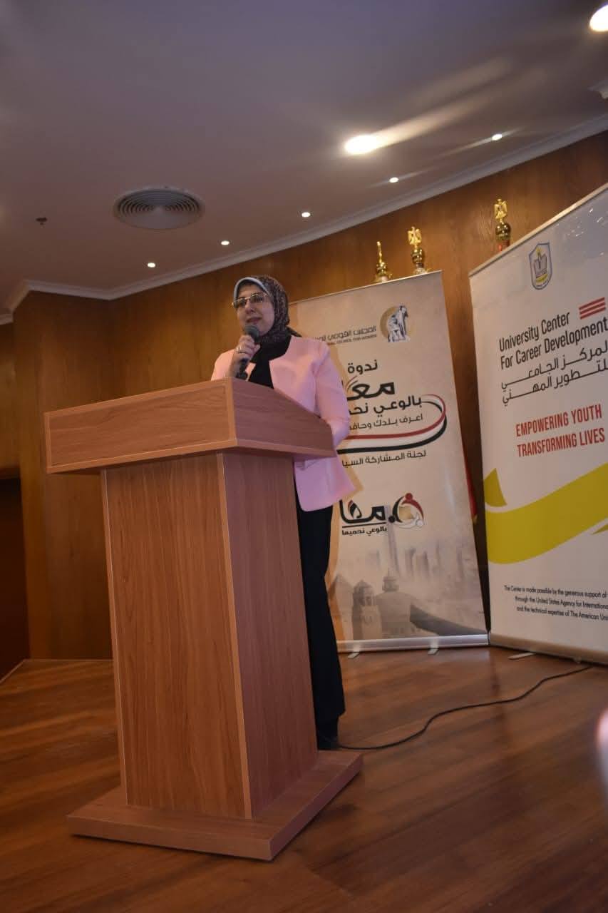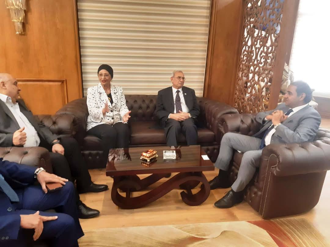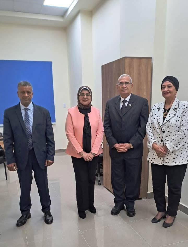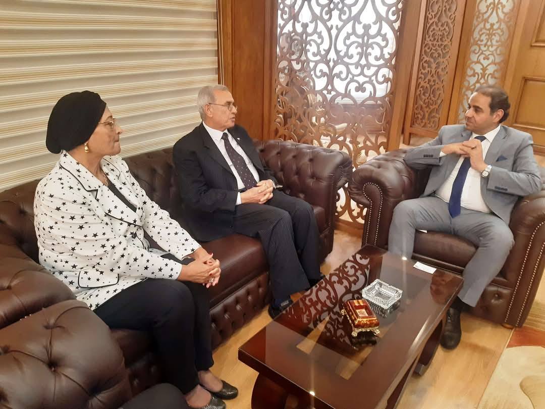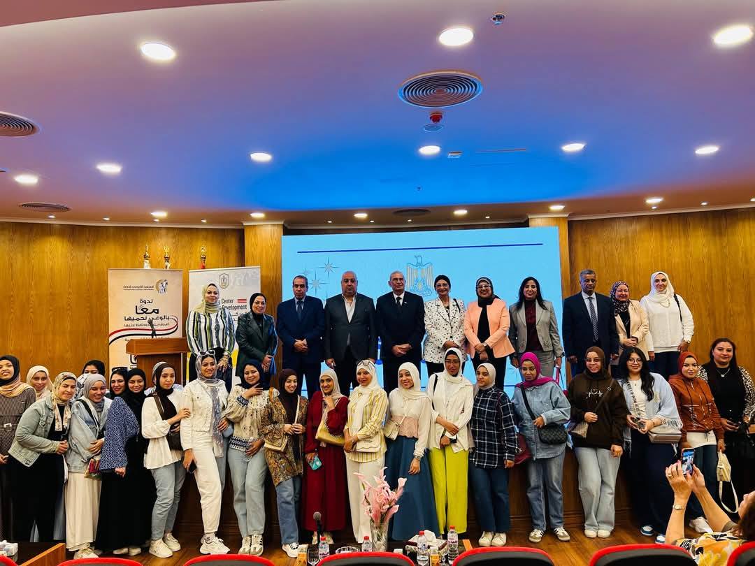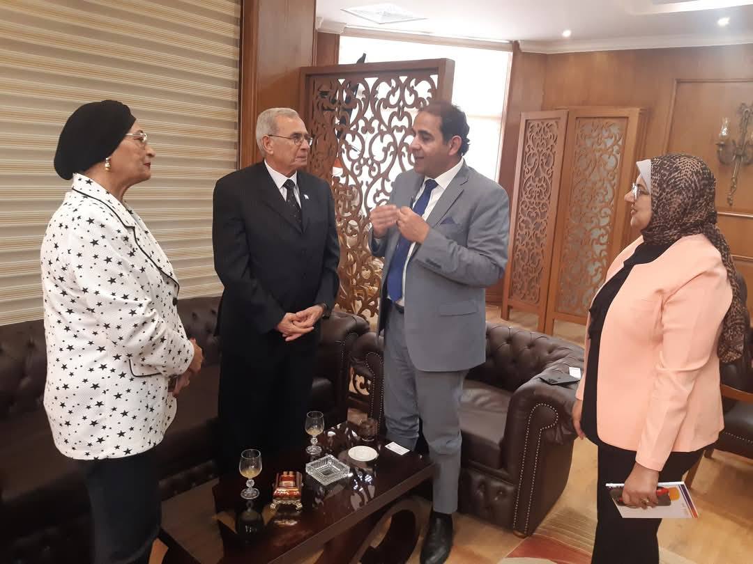 Prof. Dr. Sherif Saleh, President of Port Said University, received the Political Participation Committee of the National Council for Women, headed by Representative Prof. Dr. Rasha Mahdi. The committee was represented by Major General Refaat Qamssan, former advisor to the Prime Minister and Deputy Chairman of the Executive Authority of the National Elections Authority and a consultant to the Political Participation Committee, and Counselor Dina El-Gendy, a lawyer at the Court of Cassation and the Supreme Constitutional Court and a member of the committee launching the initiative “Together We Protect It with Awareness”. Port Said University was the first Egyptian university to host the initiative’s activities. The guests were received by Prof. Dr. Ahmed Abdel Qader, Dean of the Faculty of Sports Sciences; Prof. Dr. Ahmed Abdel Rahman, Dean of the Faculty of Commerce; Prof. Samia Moselhy, Secretary General of the University; and Prof. Dr. Heba Soliman, Director of Training at the University and a member of the Political Participation Committee of the National Council for Women. The event was attended by a large number of faculty members, administrative staff, and students from various faculties of the university.