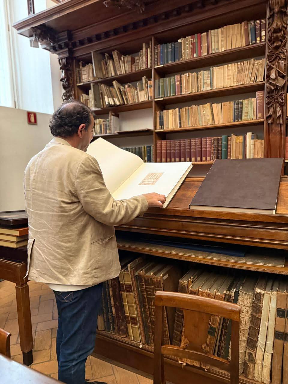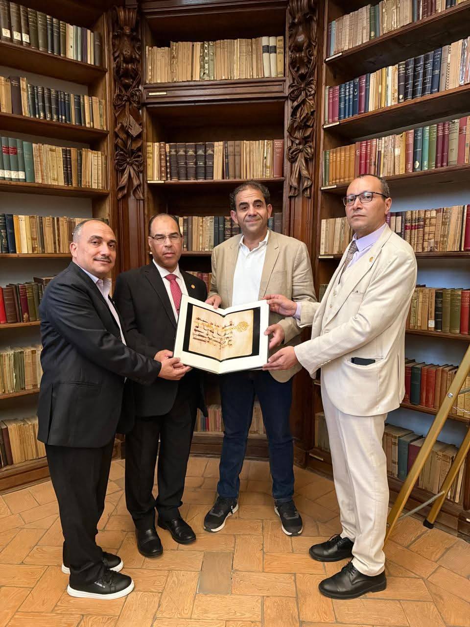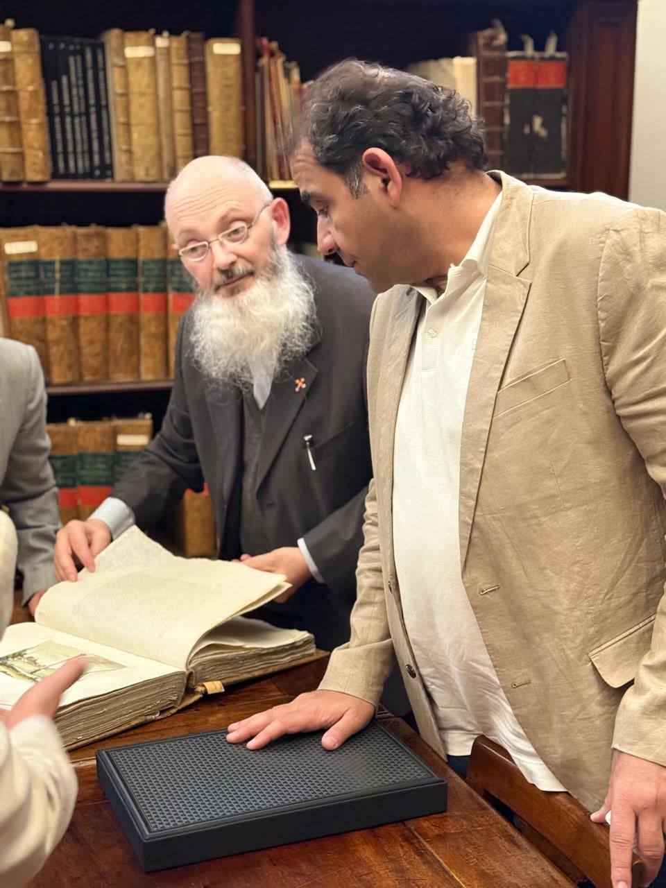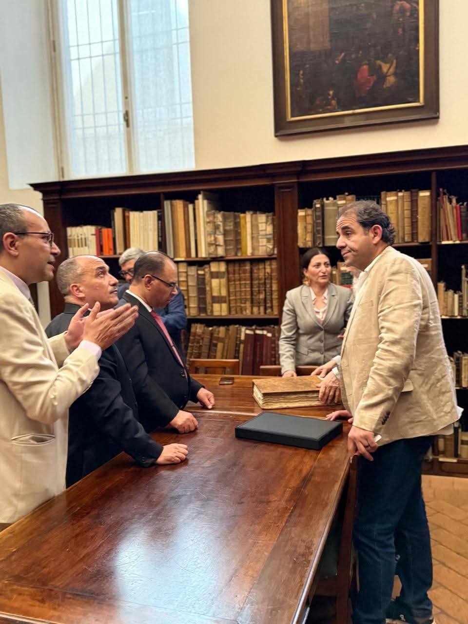 At the end of his visit to the Bibliotheca Ambrosiana in Milan, the President of Port Said University thanked Prof. Dr. Monsignor Braschi (Director of the Library), expressing his pleasure at being presented with the library catalog.