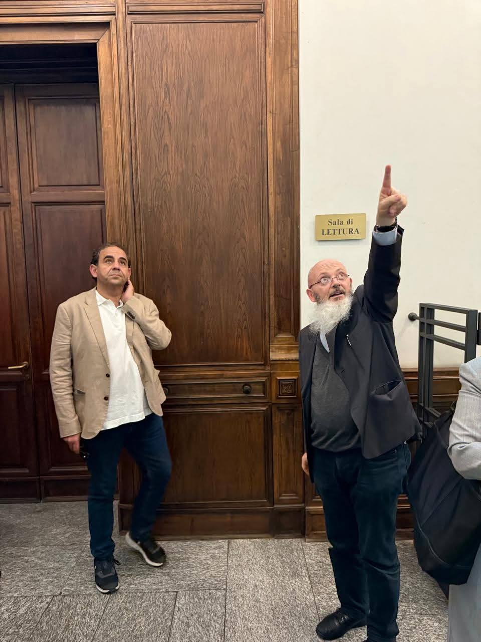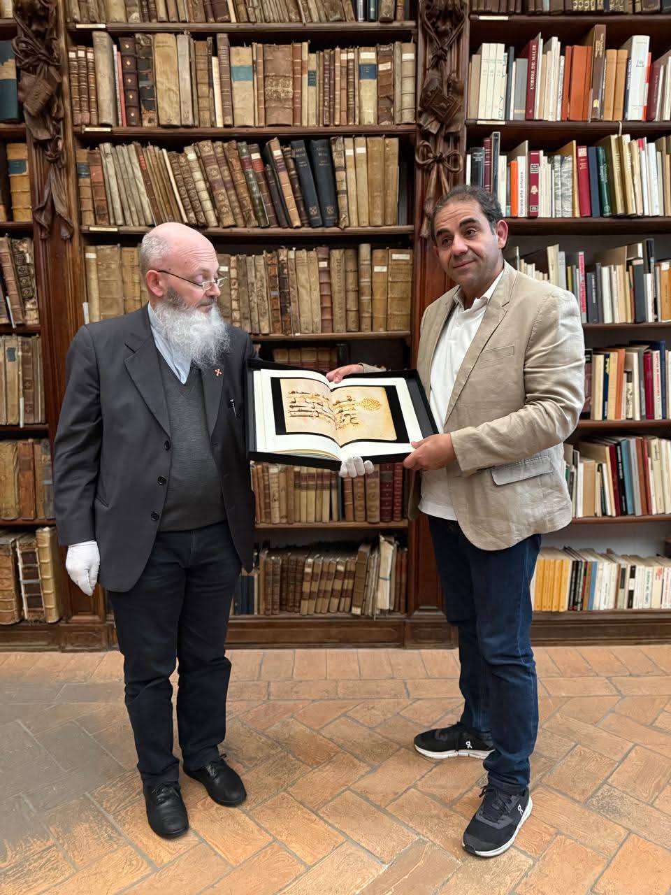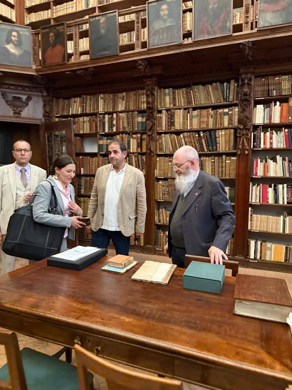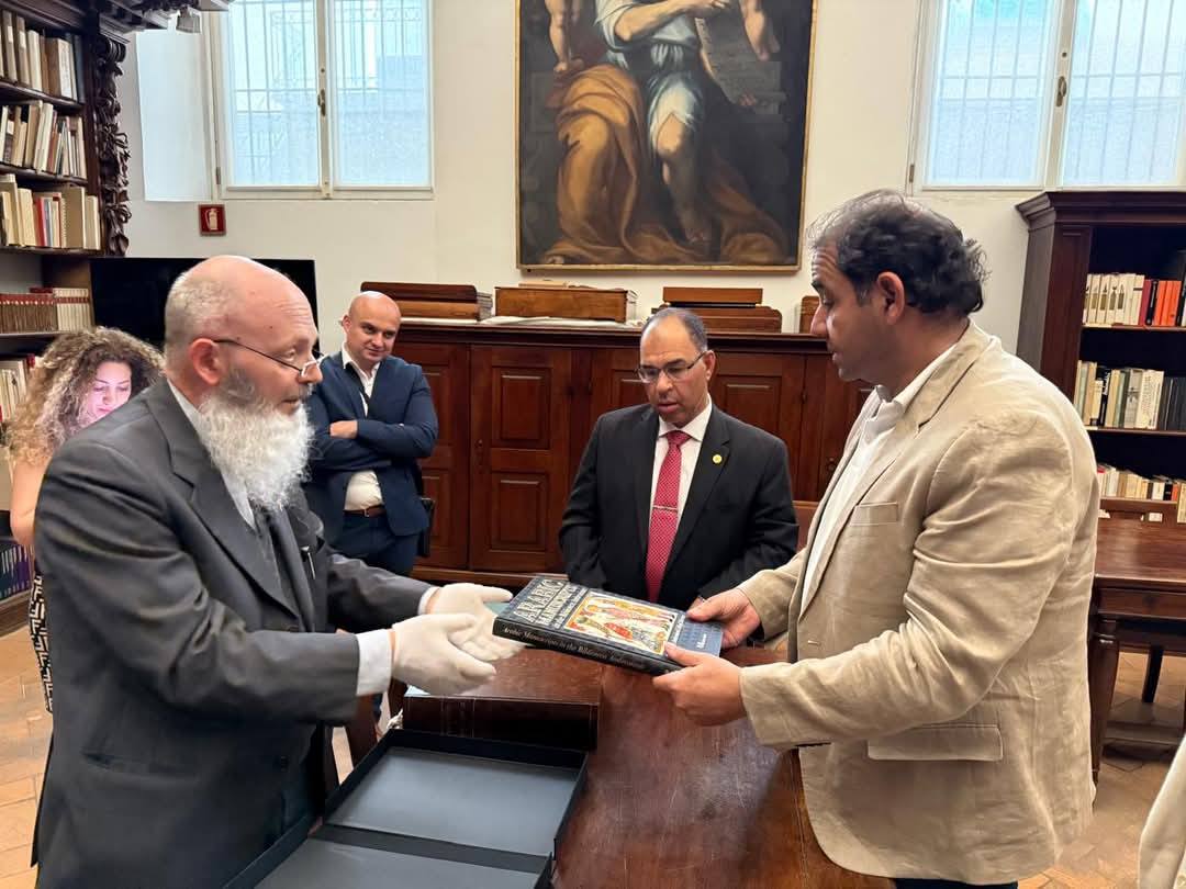 At the end of his visit, the Catholic University of Milan organized an official visit to the historic Ambrosiana Library in Milan. He was received by Prof. Dr. Monsignor Braschi (Director of the Library) and Dr. Juliet Shaker.