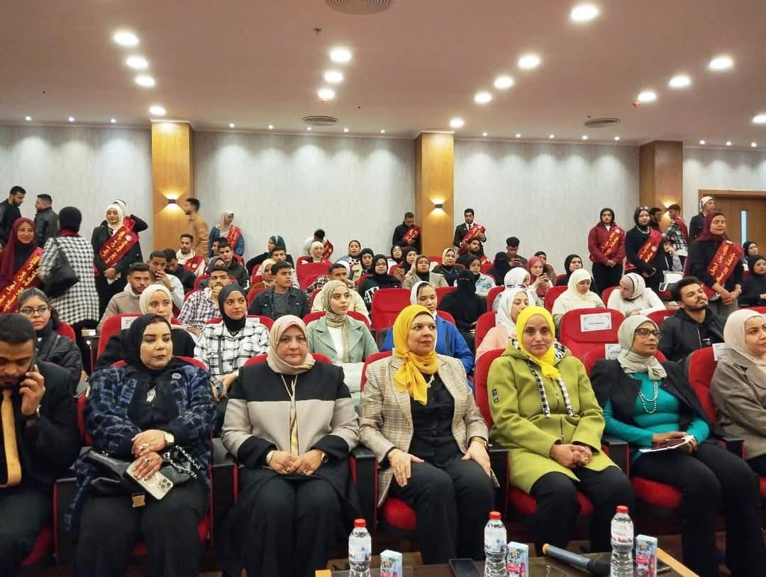 The Community Service and Environmental Development Sector at Port Said University organized today a symposium entitled “Combating Addiction of All Kinds” under the auspice of Prof. Dr Sherif Saleh, President of Port Said University, and the supervision and attendance of Prof. Dr Rawya Rizk, Vice President for Postgraduate Studies and Research and Supervisor of the Community Service and Environmental Development Sector. The symposium is in cooperation with the Faculty of Nursing under the supervision of: Prof. Dr Sanaa Abdel Azim, Dean of the Faculty of Nursing, and Dr Najat Shalabi, Vice Dean for Community Service and Environmental Development Affairs. In the presence of Prof. Dr Amal Khalil, supervisor of the education and student sector, and a number of faculty deputies for community service and environmental development affairs.