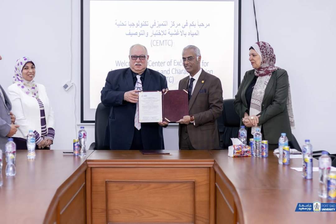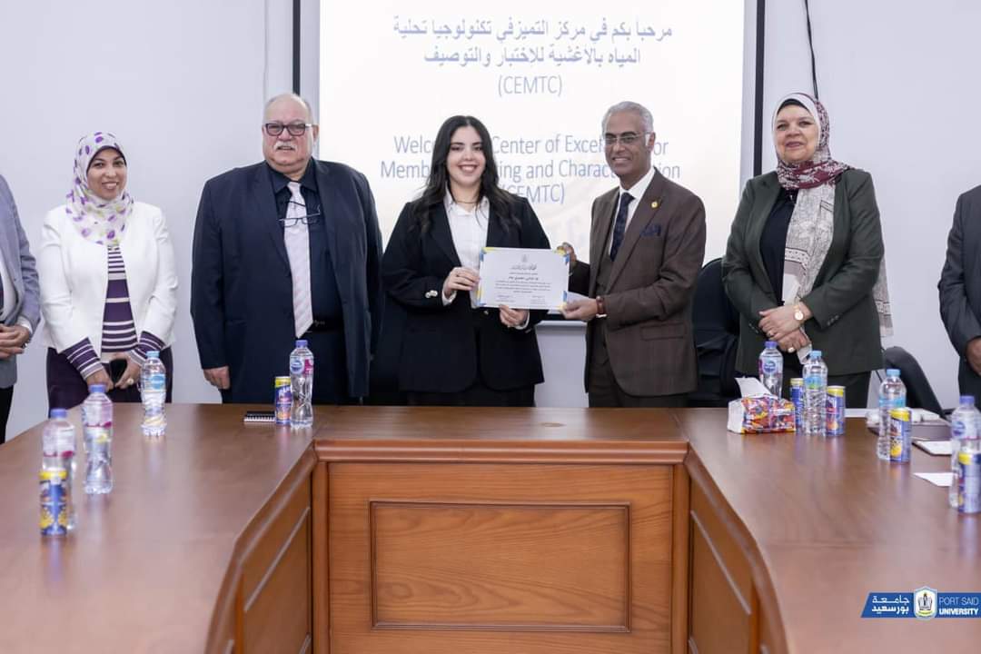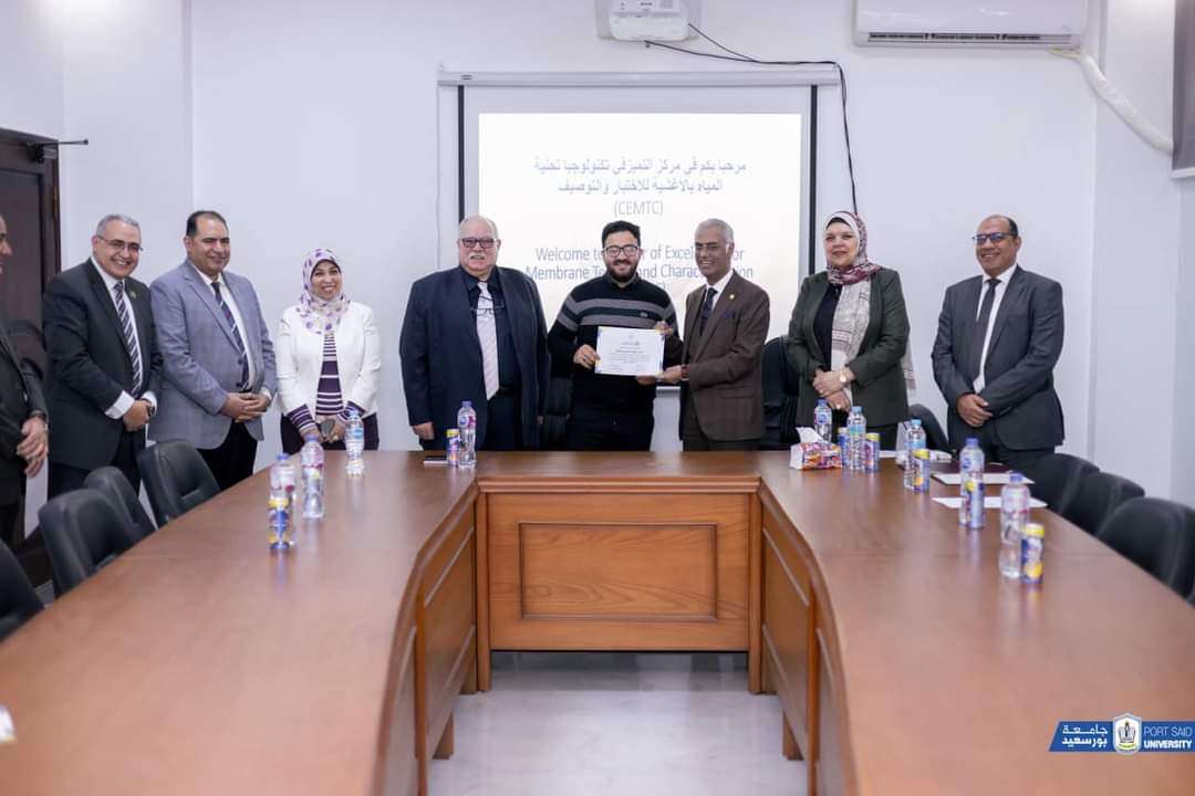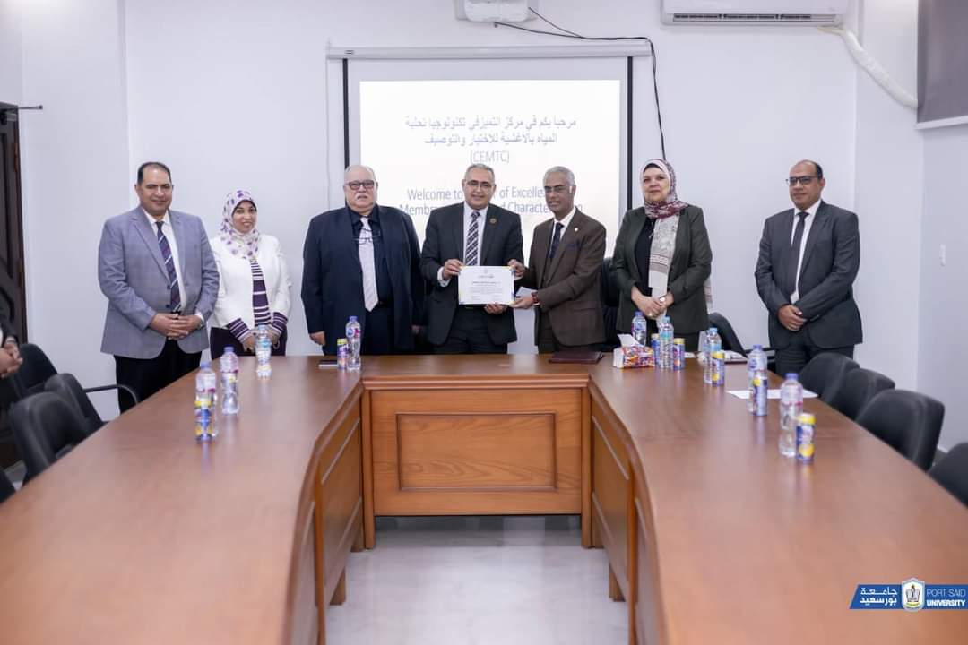 The Center of Excellence in Membrane Water Desalination Technology at Port Said University obtained international accreditation, where Eng. Hani El-Desouki, Executive Director of the National Accreditation Council, handed over the international accreditation certificate in accordance with ISO 17025:2017 to Prof. Dr Ayman Mohamed Ibrahim, President of Port Said University, in the presence of Prof. Dr Rawya Yahya Rizk- Vice President for Postgraduate Studies, Prof. Dr Taha Farag, Dean of the Faculty of Engineering, and Prof. Dr Muhammad Bassiouni, Director of the Center.