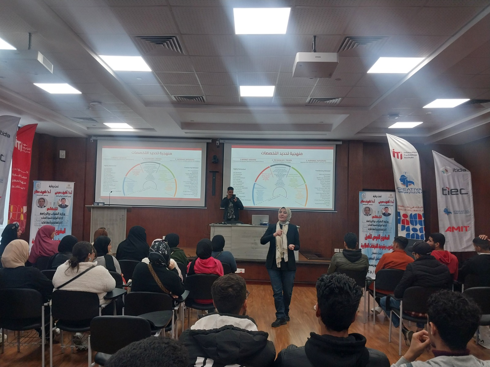 Then, a dialogue meeting was held in the field of entrepreneurship under the supervision of Prof. Dr. Mona Zatoun, Assistant Professor of Curricula and Teaching Methods at the Faculty of Specific Education at Port Said University.