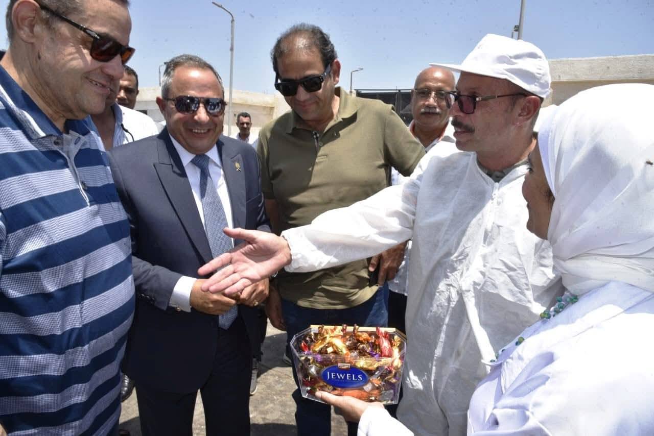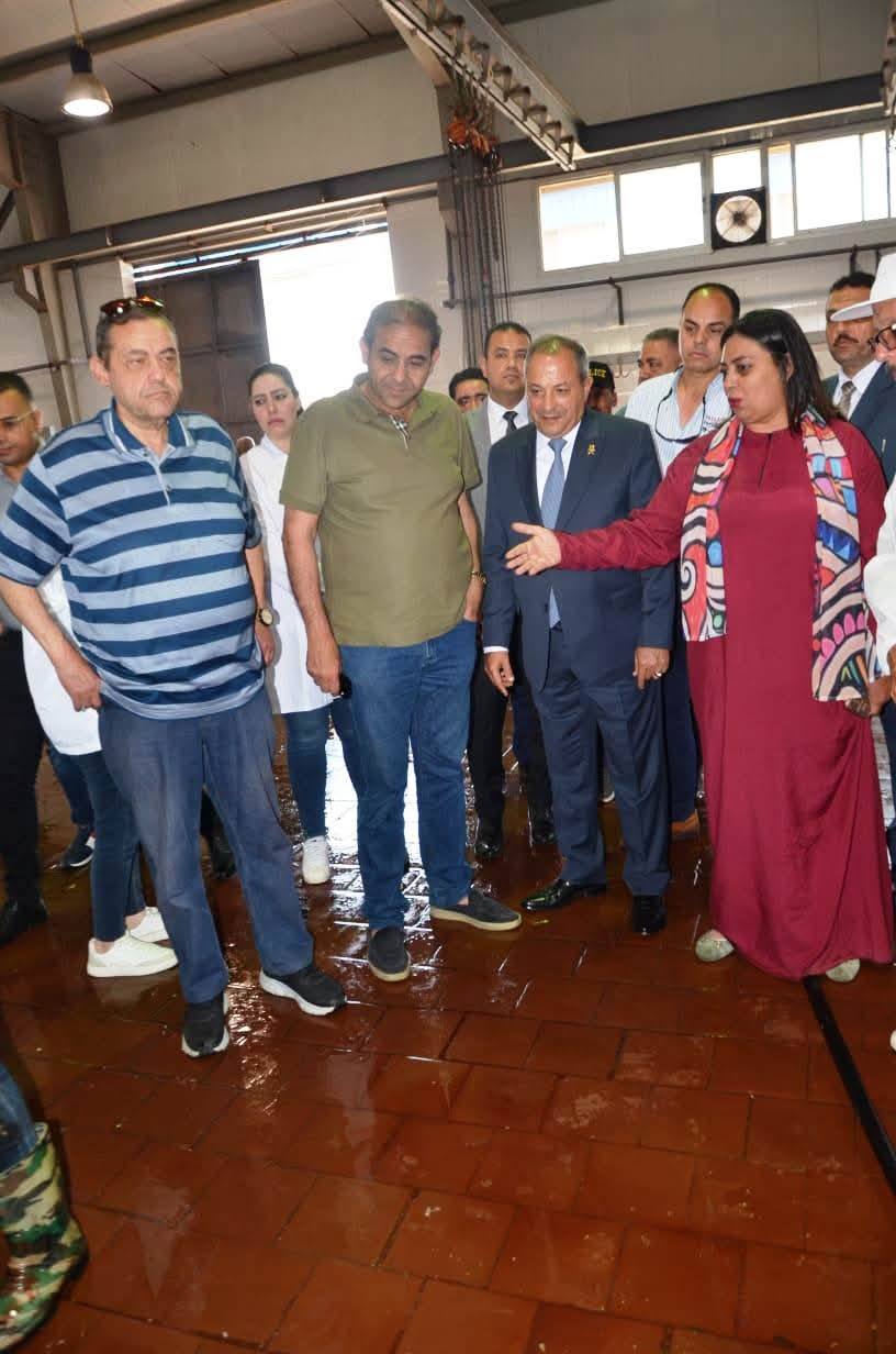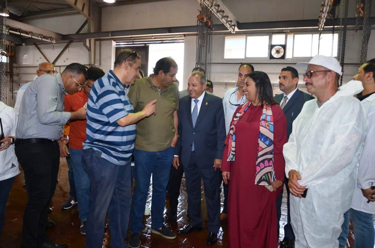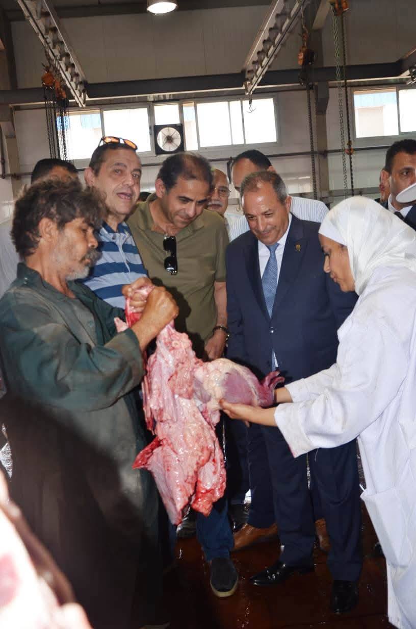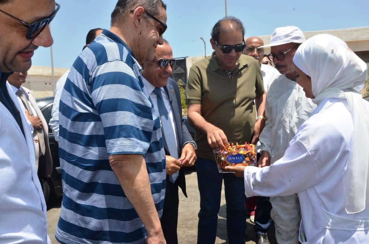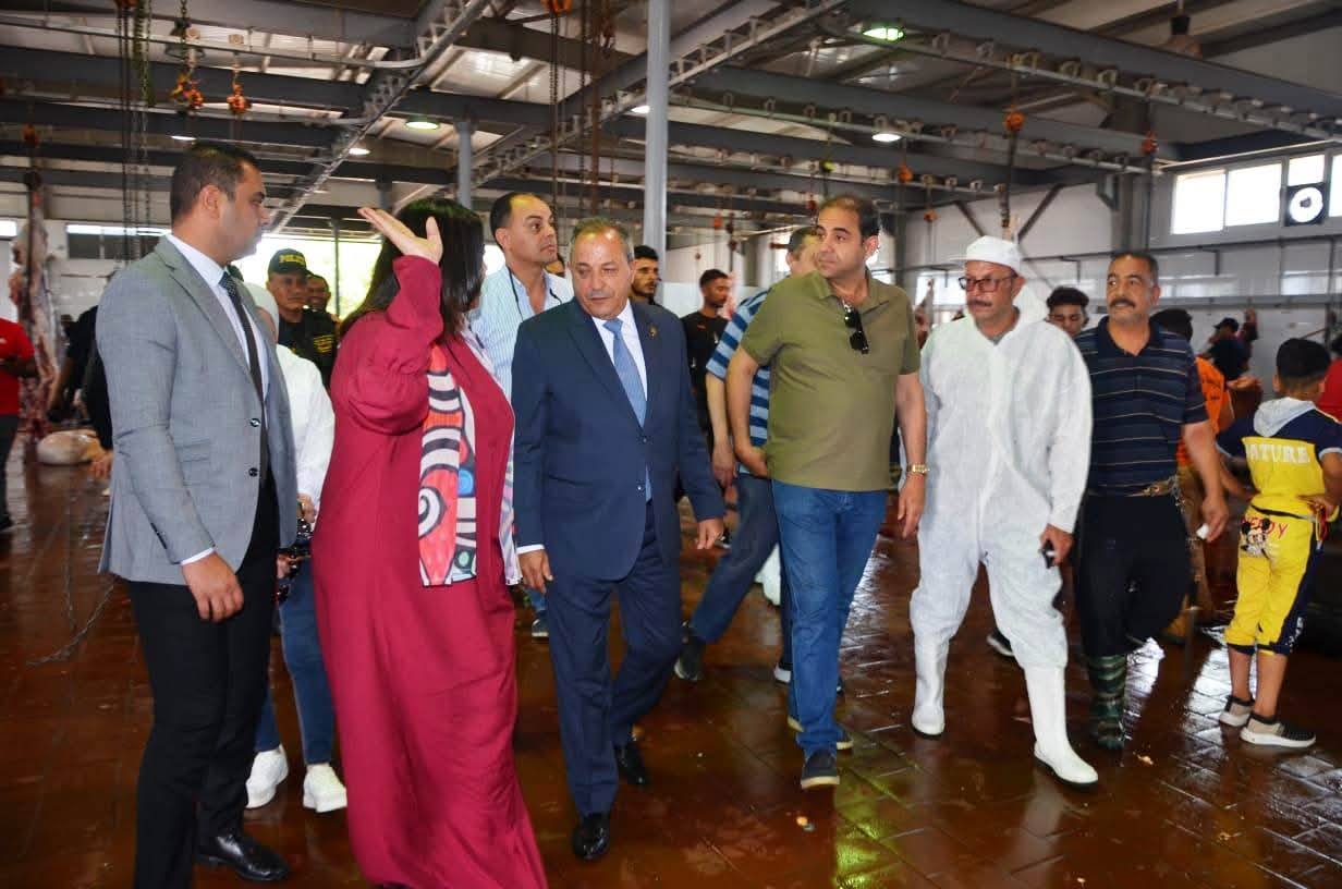 Prof. Dr. Sherif Saleh, President of Port Said University, accompanied Major General Moheb Habashi, Governor of Port Said, on an inspection tour of the governorate’s abattoir on the first day of Eid al-Adha, where they were received by Dr. Faten Salah, Director General of the Veterinary Medicine Directorate. This visit comes within the framework of the leadership of both sides participating in the celebration of Eid al-Adha.