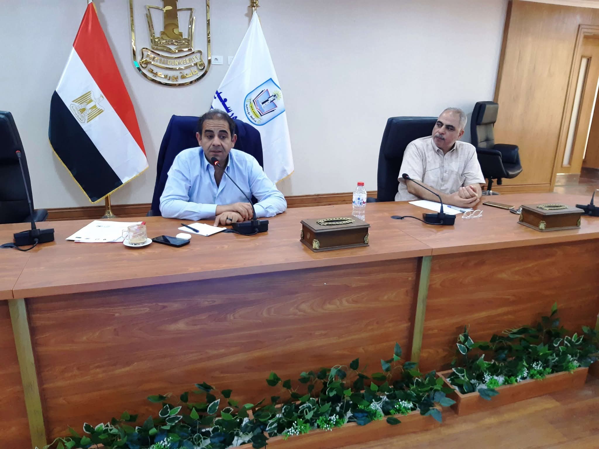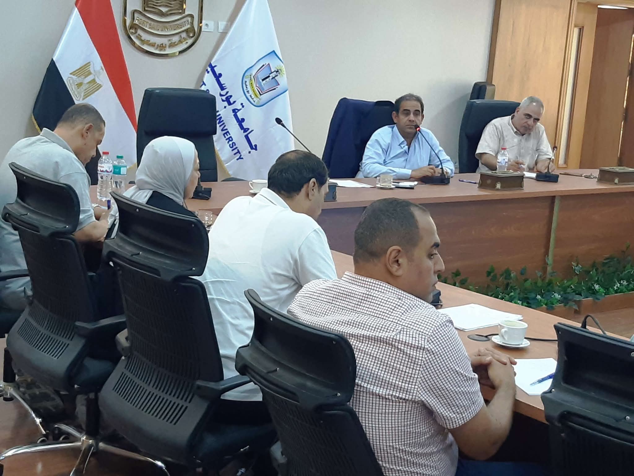 Prof. Dr. Sherif Saleh, President of Port Said University, chaired a meeting of the University Facilities Committee, attended by committee members. The meeting discussed mechanisms for maximizing the utilization of university facilities by examining the current situation and the optimal utilization of all university buildings. It also addressed identifying actual needs and allocating resources and material assets in line with the priorities of the various faculties.