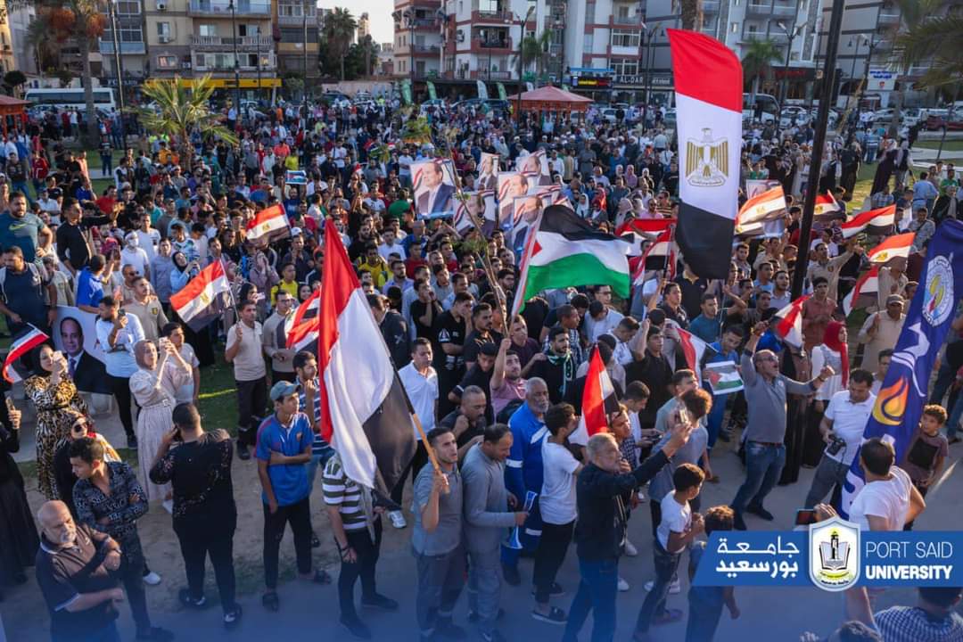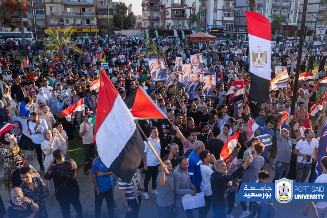 قاد الاستاذ الدكتور أيمن إبراهيم رئيس جامعة بورسعيد المئات من طلاب الجامعة بمسيرة داعمه لقرارت السيد الرئيس عبد الفتاح السيسي رئيس الجمهورية تجاه القضية الفلسطينية منددين بالاوضاع التي تحدث في غزة.