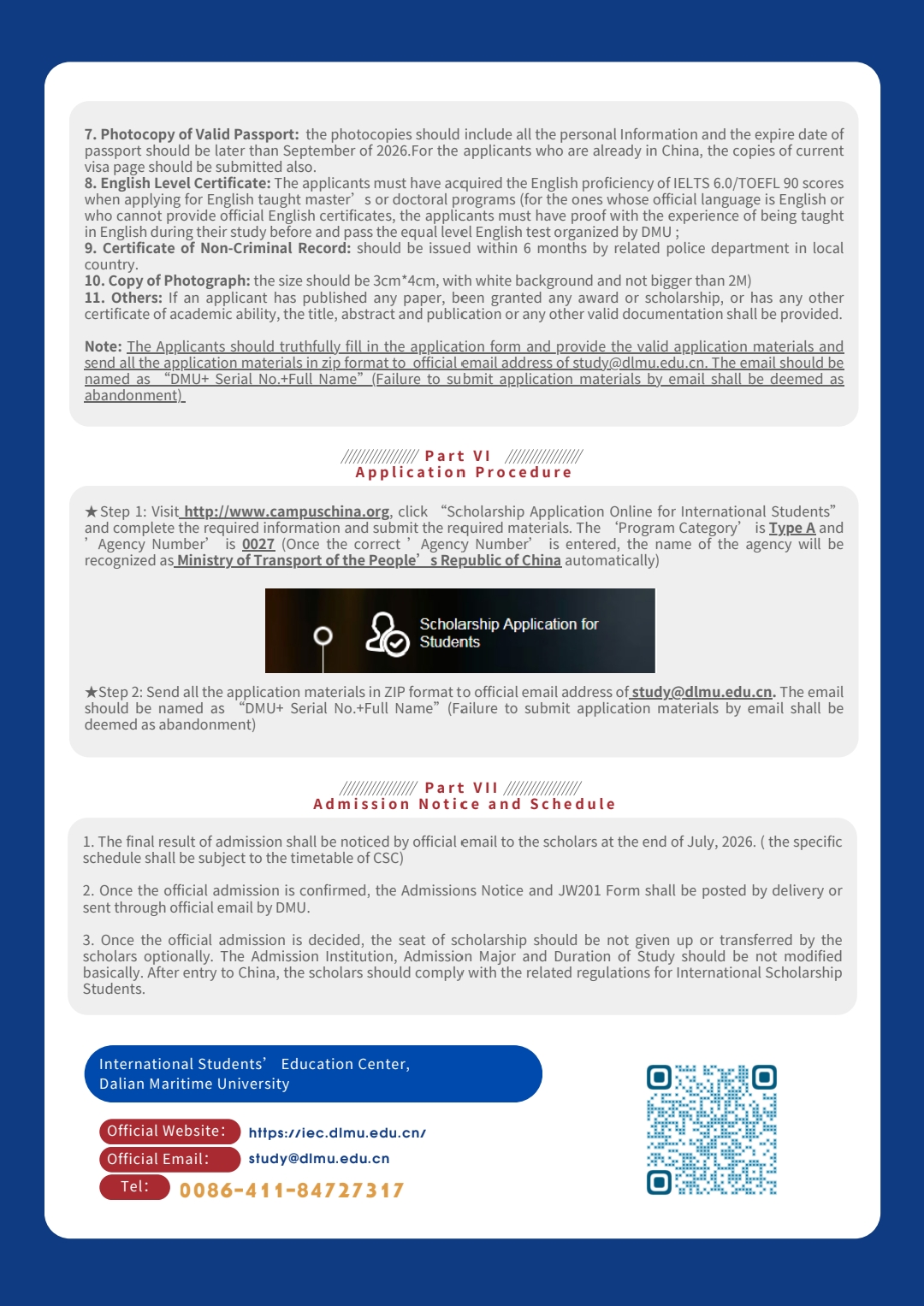 أعلنت جامعة داليان البحرية (DMU) عن فتح باب التقديم لبرنامج “منحة الحكومة الصينية للنقل” لعام 2026، والذي يُعد ثمرة تعاون بين وزارتي التعليم والنقل في جمهورية الصين الشعبية، ويهدف إلى استقطاب الكفاءات المتميزة عالميًا في قطاع النقل.وتُعد هذه المنحة من المنح الدراسية الممولة بالكامل، حيث تستهدف الطلاب الدوليين الراغبين في الالتحاق ببرامج الماجستير في عدد من التخصصات الحيوية، من بينها: الهندسة البحرية، والذكاء الاصطناعي، وعلوم الحاسب، وإدارة الأعمال، والنقل واللوجستيات، بالإضافة إلى مجالات الطاقة والبيئة والقانون البحري.