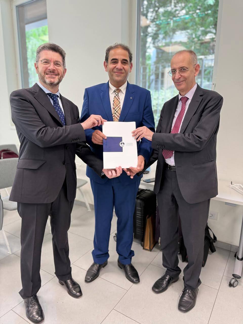 وقد عبر الاستاذ الدكتور شريف صالح رئيس جامعة بورسعيد عن سعادته وحرصه بالحضور الى إيطاليا لمناقشة سبل التعاون الدولى بين الجامعتين، ومدى اهتمام جامعة بورسعيد بالاعمال البحثية والعلمية الدولية