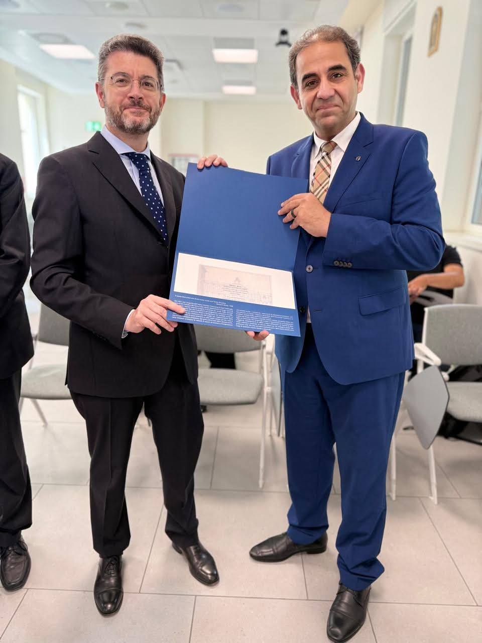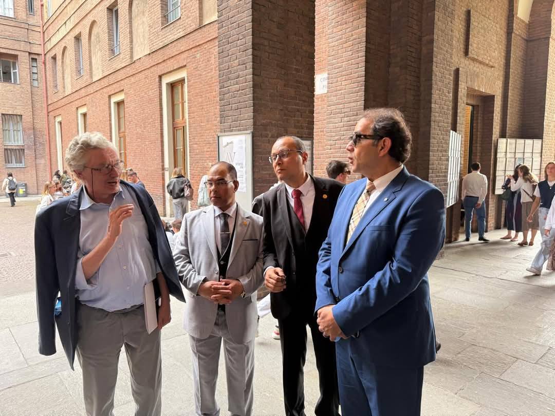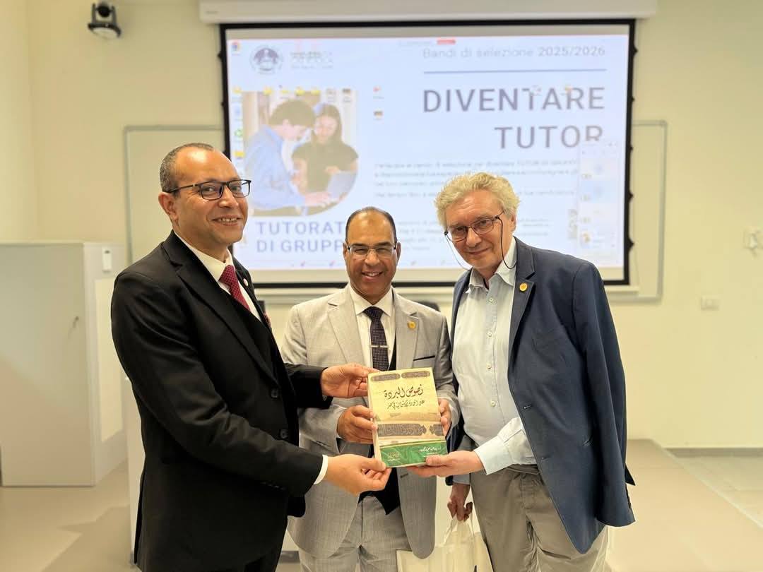 وكان فى استقبال سيادته ا.د. اندريه كانوفا عميد كلية الآداب بالجامعة الكاثوليكية بميلانو إيطاليا، ا.د. ماركو ريتسى رئيس قسم الدراسات الدينية بالجامعة الكاثوليكية بميلانو، أ.د. باولو برنكا أستاذ كرسى الدراسات العربية والإسلامية بالجامعة الكاثوليكية بميلانو