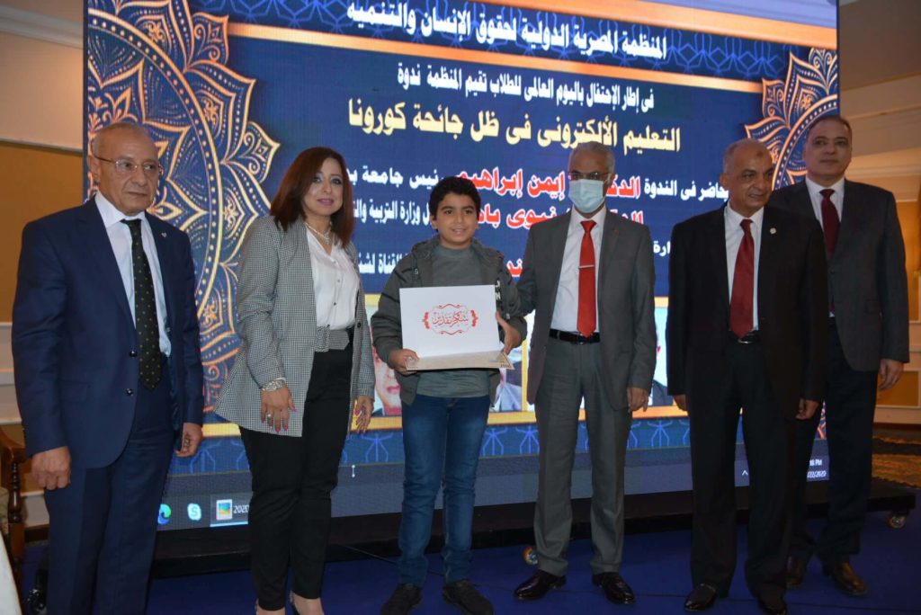 Dans le cadre de la célébration de la Journée internationale des étudiants, le Dr Prof. Ayman Mohamed Ibrahim, président de l’université, a donné une conférence sur le colloque organisé par l’Organisation internationale égyptienne des droits de l’homme intitulé “E-Learning and Corona”. La célébration a commencé par l’hymne national suivi d’un mot du Dr Prof. Mohamed Salem, doyen de la faculté d’éducation, et du Dr Atif Alam el-Din, membre du Sénat, abordant l’importance de l’apprentissage en ligne et de la transformation numérique pendant Corona pandémie. Ensuite, le Dr Prof.Ayman Mohamed Ibrahim, président de l’université, a prononcé un mot pour souhaiter la bienvenue aux invités et aux organisateurs M. Yousef Azam, chef du secteur Qanal aux organisations internationales égyptiennes pour les droits de l’homme, et Mme Lucy Mandor, vice-présidente pour Secteur Qanal pour les services communautaires de l’organisation. Par la suite, le Dr Rawia Rezq, chef du bureau d’information, a déclaré les progrès significatifs réalisés par l’université dans le domaine de la transformation numérique, des tests en ligne et des plateformes électroniques desservant plus de 26 000 étudiants. À la fin, le Dr Prof. Ayman Ibrahim, président de l’université, a récompensé les excellents étudiants dans les domaines scientifique, sportif, culturel et artistique.