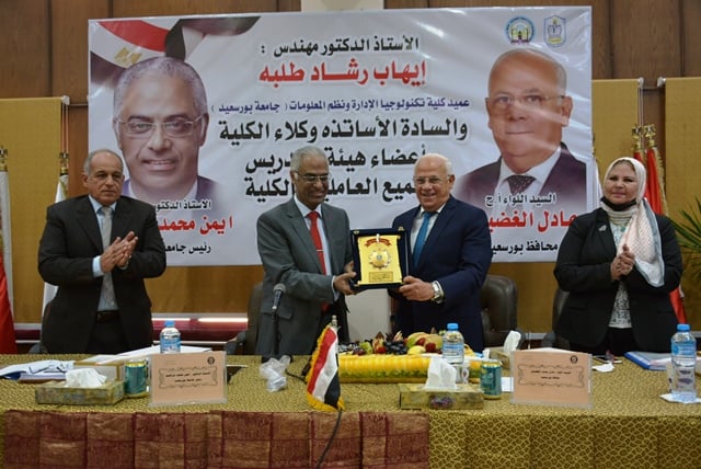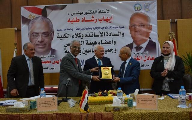 Le conseil universitaire a tenu la réunion mensuelle le lundi 30 novembre 2020, séance n ° 150. La réunion était sous la présidence du Dr Prof. Ayman Ibrahim, président de l’université, et la présence de Sir Major General Adel al- Ghadban, gouverneur de Port-Saïd, qui étaient à la réception du Dr Prof. Ihab Tolba, doyen de la Faculté de gestion et de technologie de l’information. À cette occasion, le président de l’université a décerné au gouverneur le bouclier universitaire pour l’obtention du titre de meilleur gouverneur du monde arabe et a décerné au Dr Atif Alam el-Din pour ses efforts considérables au cours de sa carrière à l’université et l’adhésion au Sénat égyptien.