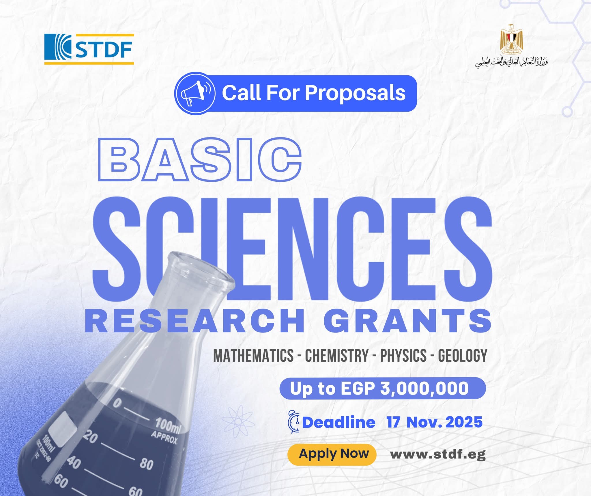 تعلن هيئة تمويل العلوم والتكنولوجيا والابتكار (STDF) عن فتح باب التقدم للنداء البحثي الرابع لبرنامج العلوم الأساسية والذي يهدف الي تحفيز البحث العلمي في هذا المجال الحيوي وبناء مجموعات بحثية مبتكرة قادرة على مواجهة التحديات مما سينعكس على مستوى البحث العلمي وأثره في مصر.