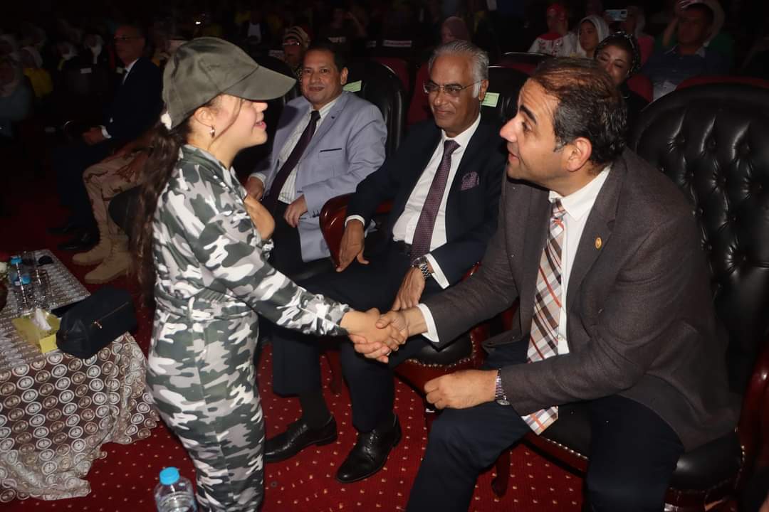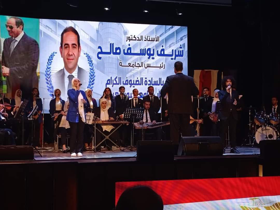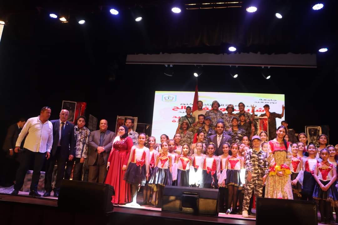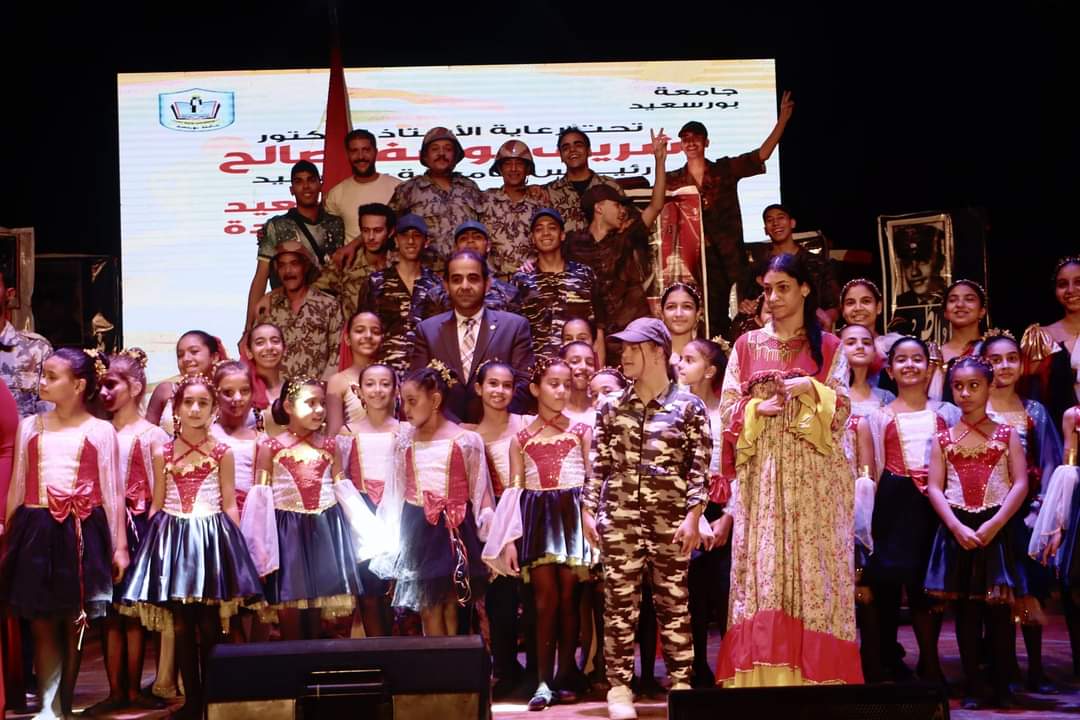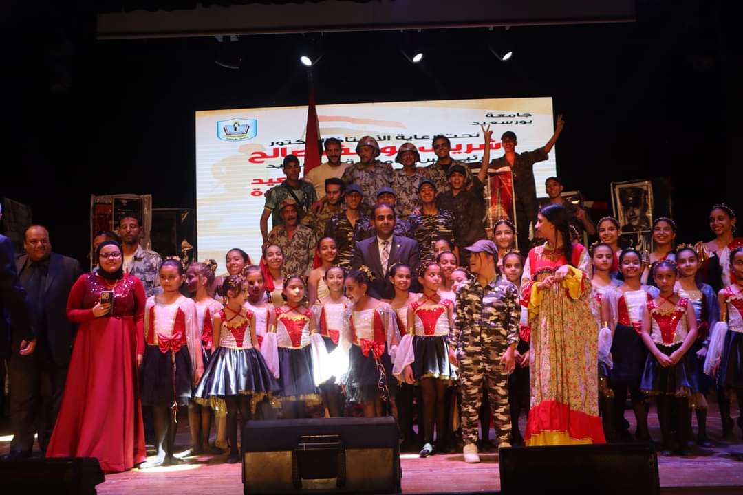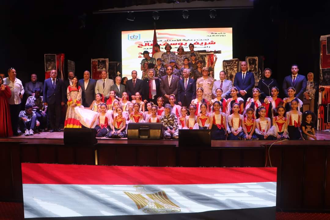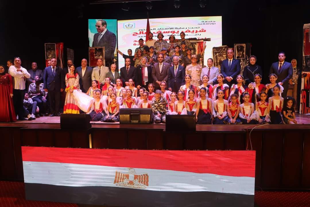 ثم أعقب كلمة سيادته عرضا فنيا موسيقيا وطنيا رائعا، لأوركسترا (نغم القناة)، بقيادة الأستاذ الدكتور: حسام جمال الدين، رئيس قسم التربية الموسيقية بكلية التربية النوعية بجامعة بورسعيد. ثم عرض مبدع لأبطال التحدي (من فناني جامعة بورسعيد من ذوي الهمم). وهو أول فريق مسرحي من نوعه لذوي الهمم بجامعة بورسعيد، ثم عرض لبالية الأطفال عرضا مبهجا، بعنوان: (منوعات وطنية)، عقب ذلك تم عرض فيلم وثائقي عن: (إنجازات جامعة بورسعيد)، واختتمت الاحتفالية بالعرض المسرحي: أغنية على الممر، تأليف: علي سالم، من بطولة فناني منتخب الجامعة المسرحي ومن إعداد وإخراج، الفنان: محمد الملكي.
