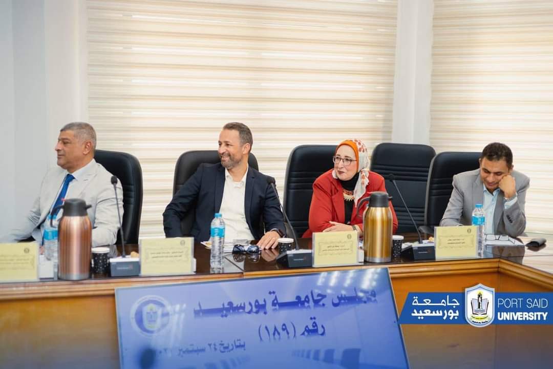 انعقد الاحد ٢٤ / ٩ / ٢٠٢٣، برئاسة الأستاذ الدكتور أيمن محمد إبراهيم رئيس جامعة بورسعيد، اجتماعه الشهري رقم ( ١٨٩ ) لمناقشة جدول الأعمال، بحضور اللواء عادل الغضبان محافظ بورسعيد السادة النواب وعمداء الكليات والسيدة أمينة الجامعة.