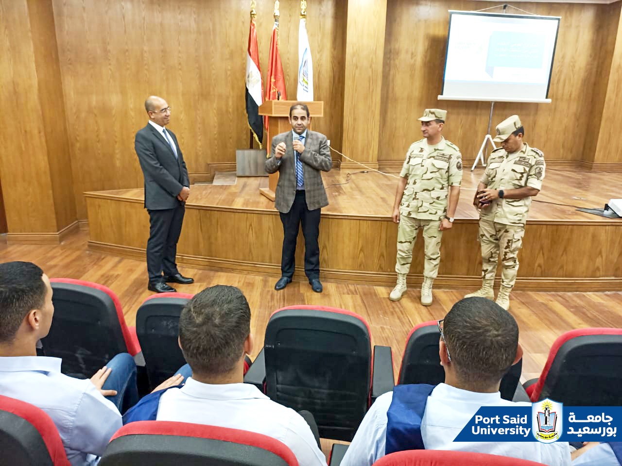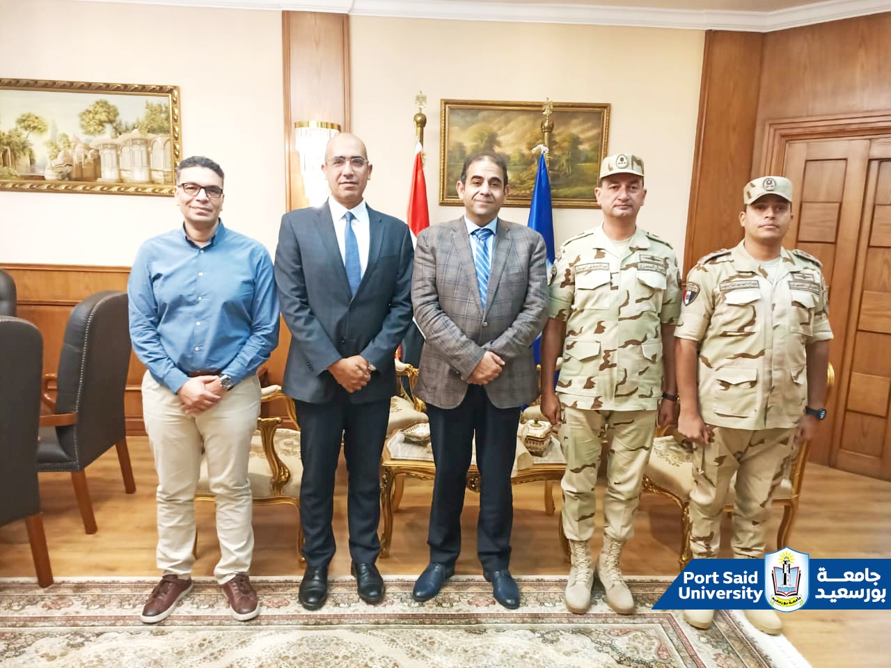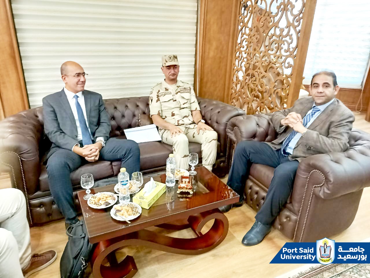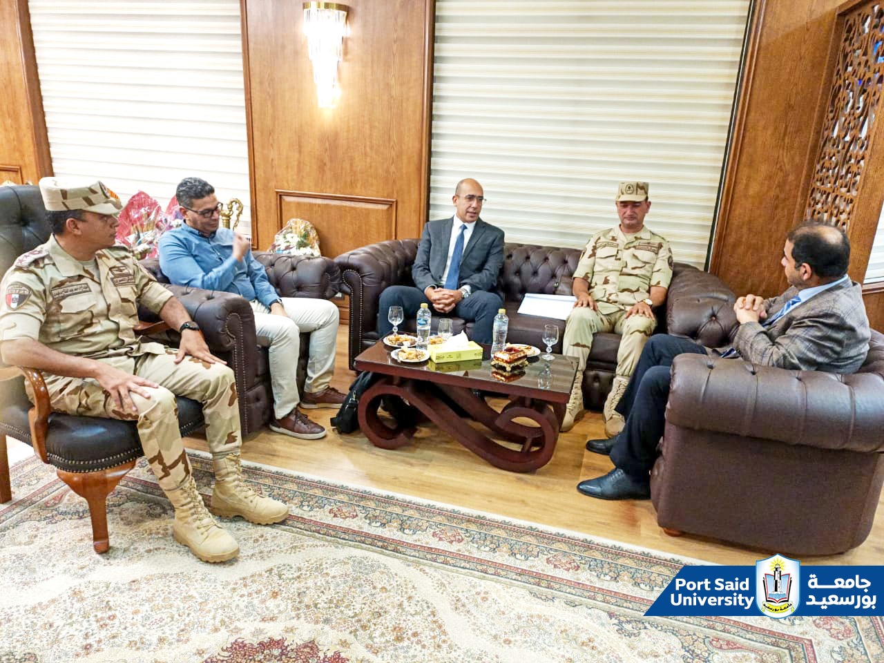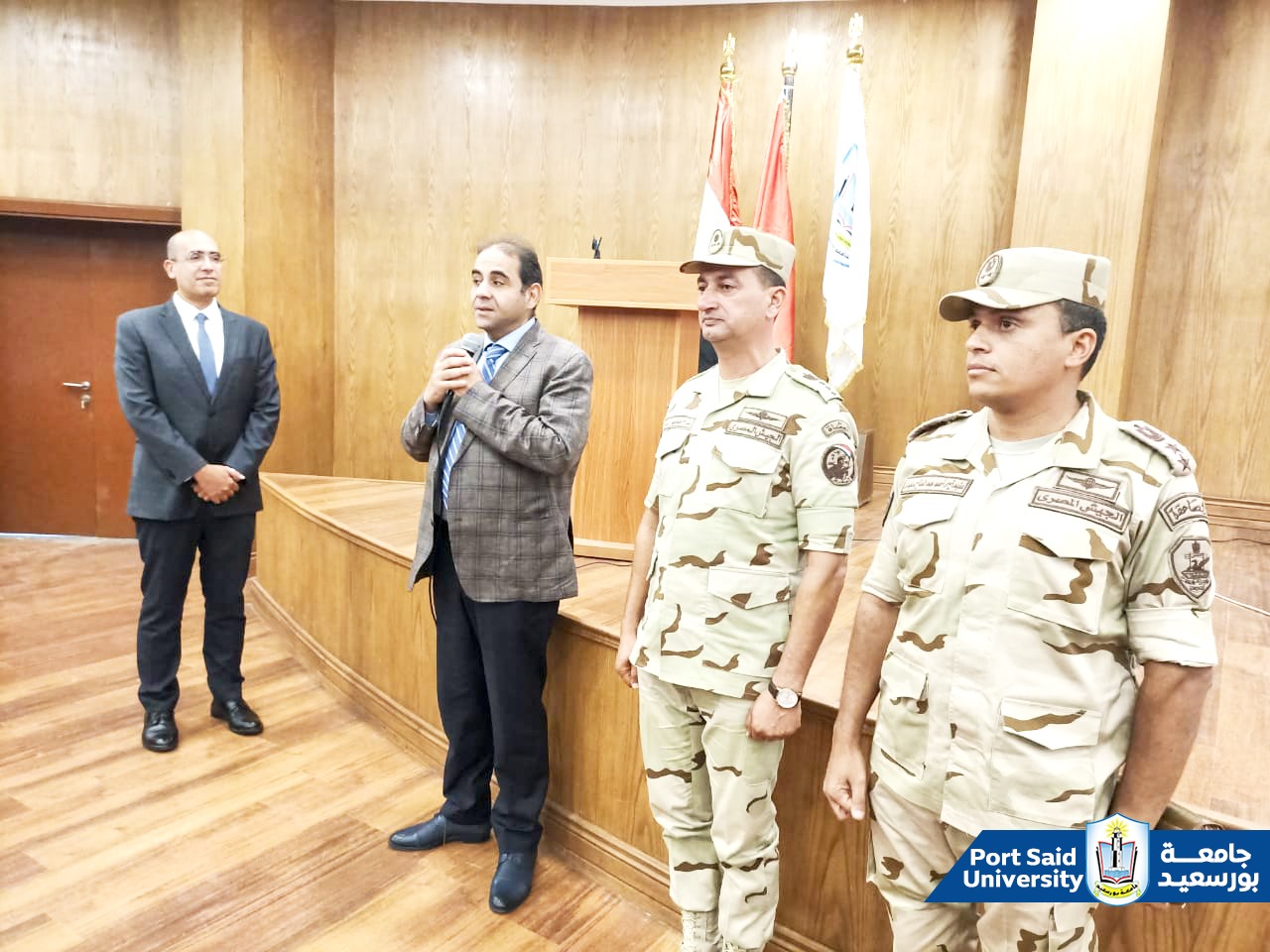 أستقبل السيد الاستاذ الدكتور/ شريف صالح رئيس جامعة بورسعيد العميد اركان حرب / مظهر الهبيان المستشار العسكرى لمحافظة بورسعيد و العميد طبيب / احمد سراج مدير التخطيط الاستراتيجى والمشروعات لمشتقتات البلازما وعميد طبيب/ محمد عبد الحميد بيومى مدير المركز الاقليمى للتبرع بالبلازما ببورسعيد وبحضور الاستاذ الدكتور / عاطف علم الدين رئيس جامعة شرق بورسعيد الاهلية والعقيد اركان حرب / احمد الدغيدى مدير ادارة التربية العسكرية بالجامعة على هامش الندوة التي نظمتها إدارة التربية العسكرية بجامعة بورسعيد والتى اقيمت تحت رعاية السيد الاستاذ الدكتور / شريف صالح رئيس جامعة بورسعيد وسيادة اللواء أ.ح / أسامة عبد الحميد قائد قوات الدفاع الشعبى والعسكرى