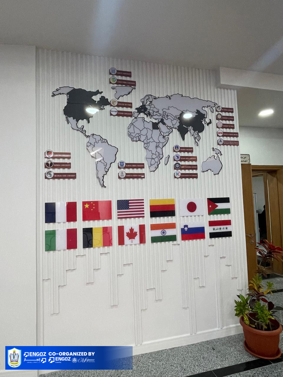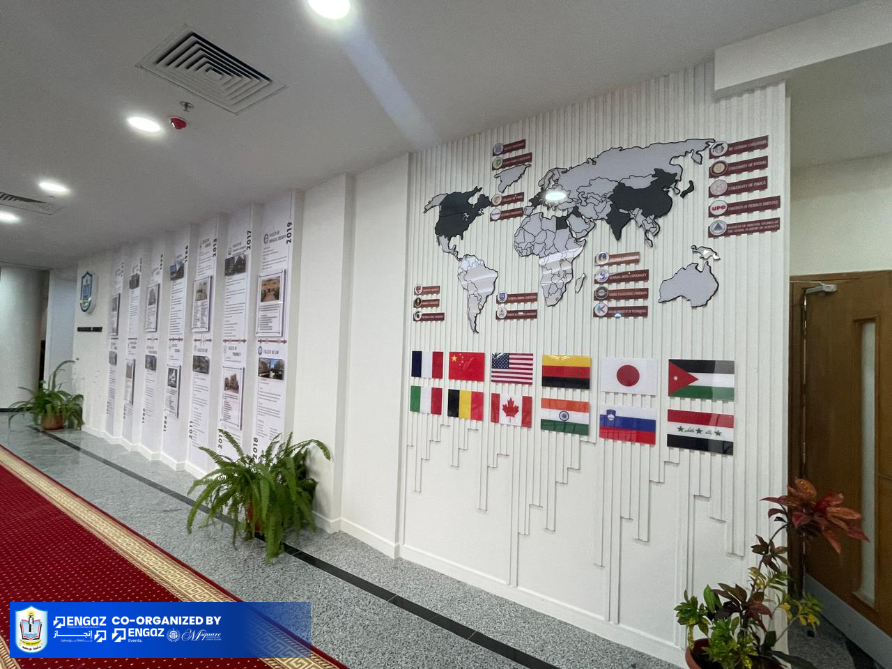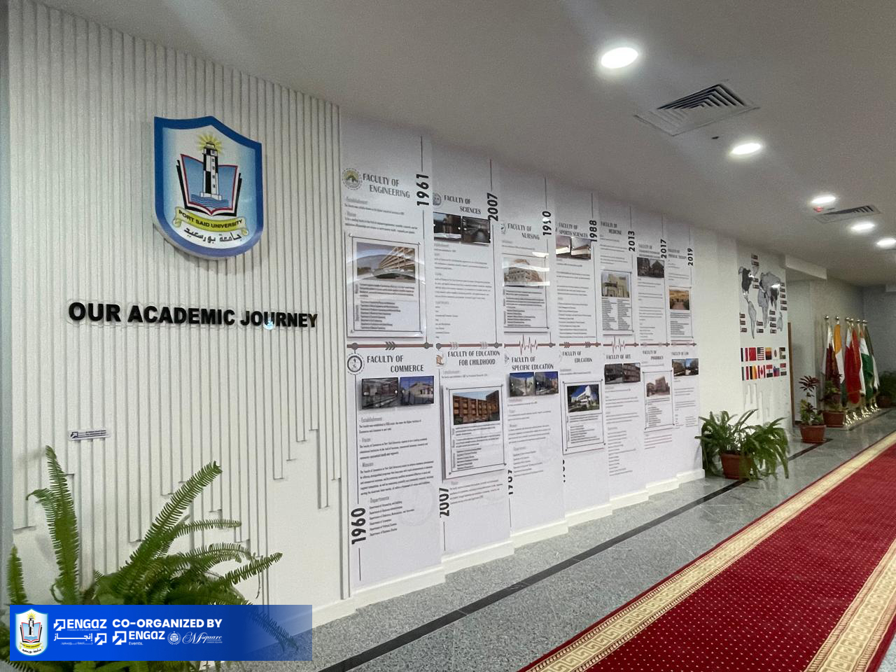 الجدار الثالث – Our Academic Journeyيحكي رحلة تأسيس كليات الجامعة في خط زمني، وينتهي بتوثيق الشراكات الدولية على خريطة العالم، ليعكس مكانة الجامعة الأكاديمية عالميًا.