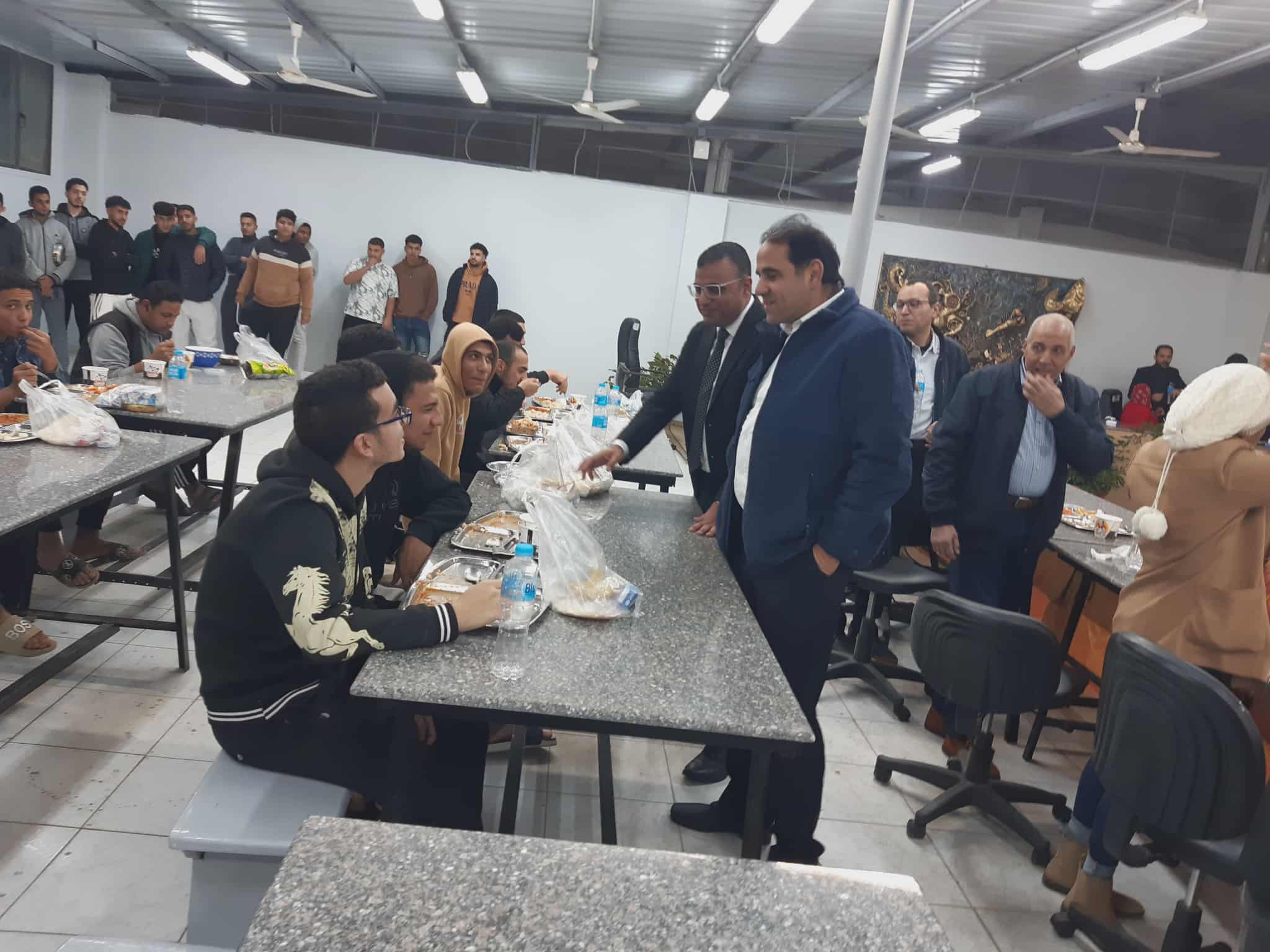 وخلال الزيارة حرص سيادته على تناول وجبة الغداء وسط طلاب المدينة الجامعية، مستمعًا لآرائهم ومقترحاتهم، ومؤكدًا أن باب مكتبه مفتوح دائمًا لاستقبال الطلاب والاستماع لمطالبهم.