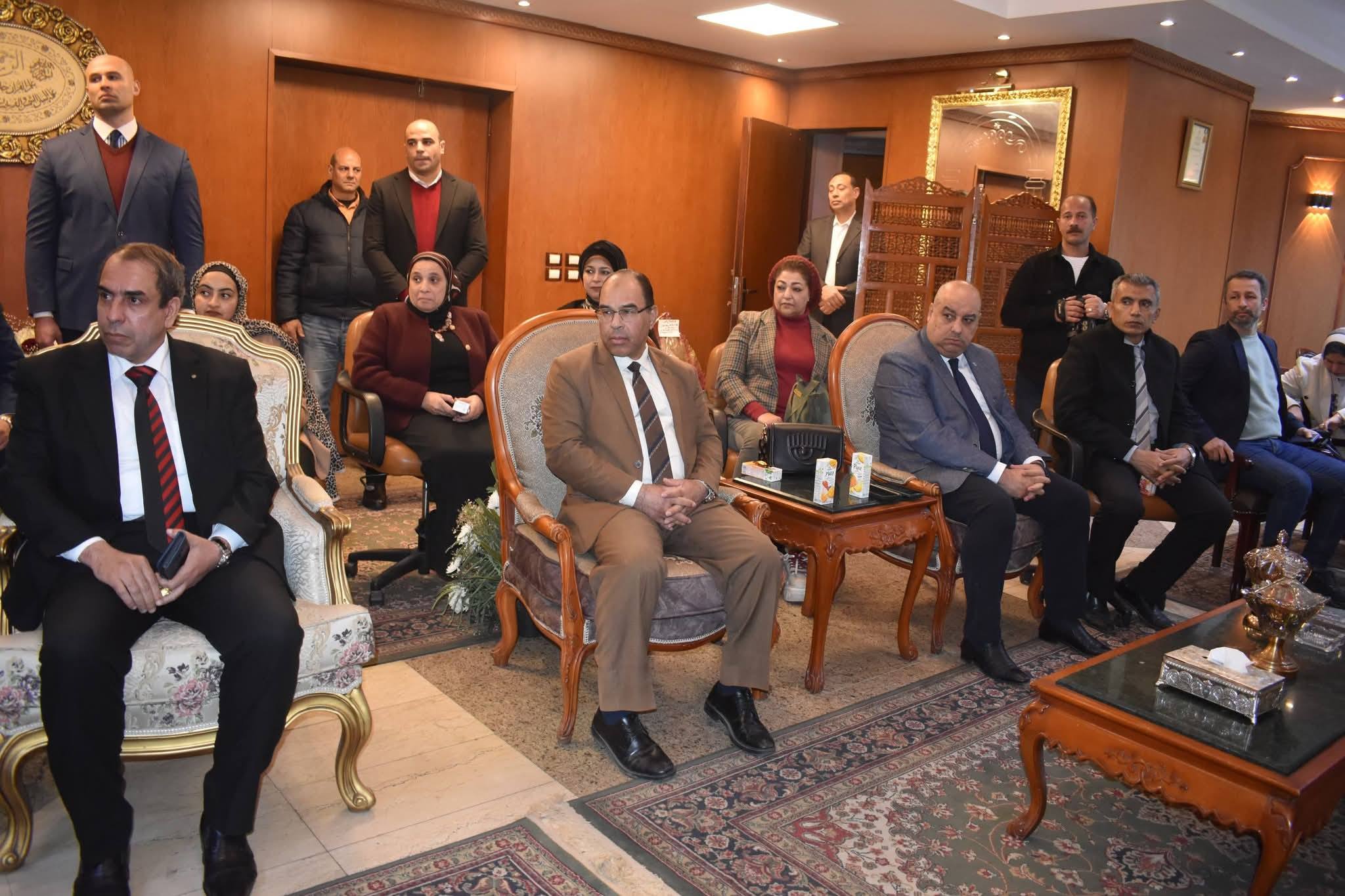 ام اليوم الاستاذ الدكتور شريف صالح رئيس جامعة بورسعيد بزيارة إلى مقر مديرية الأمن لتقديم التهنئة للواء محمد خليل الجمسي مساعد وزير الداخلية ومدير أمن بورسعيد وقيادات ورجال الشرطة بالمحافظة بمناسبة الاحتفال بعيد الشرطة ال74 وقد رافق رئيس الجامعة في الزيارة السادة نواب رئيس الجامعة والسادة عمداء الكليات والسيدة امين عام الجامعة والسادة مستشاري رئيس الجامعة