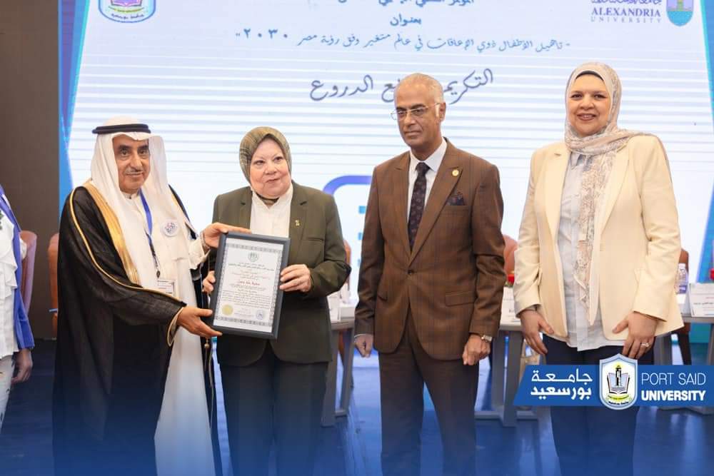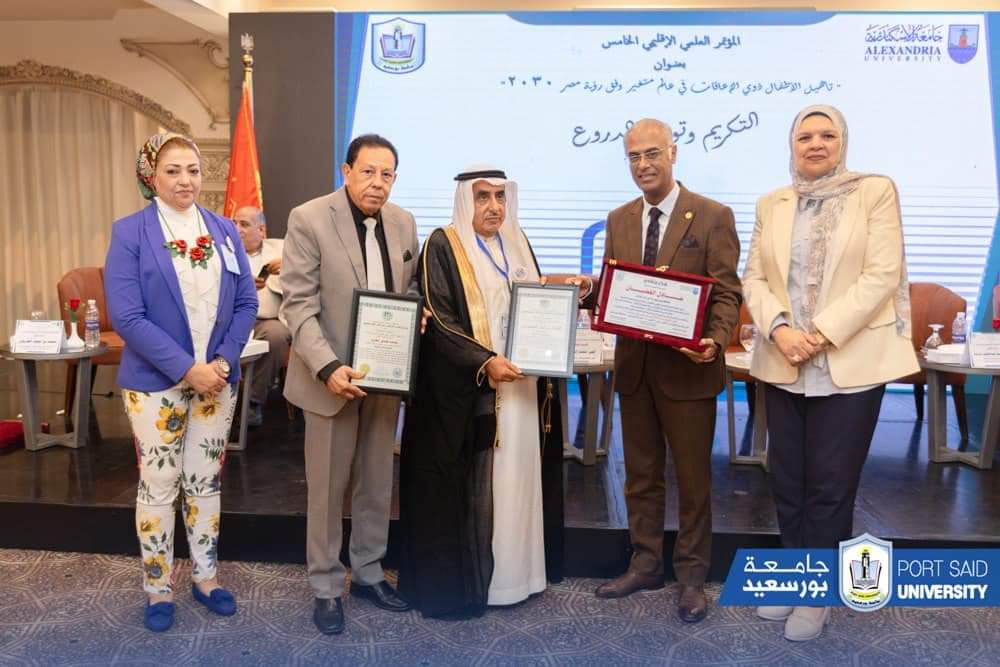 وقد قام الدكتور محمد بن حمود الطريقي باهداء الاستاذ الدكتور أيمن إبراهيم رئيس جامعة بورسعيد العضوية الفخرية وشهادة التميز في التنمية المستدامة من مجلس العالم الاسلامي للاعاقة والتأهيل.