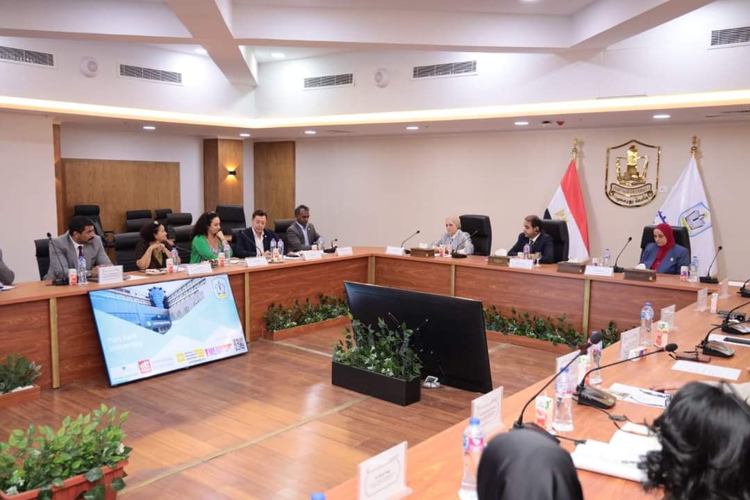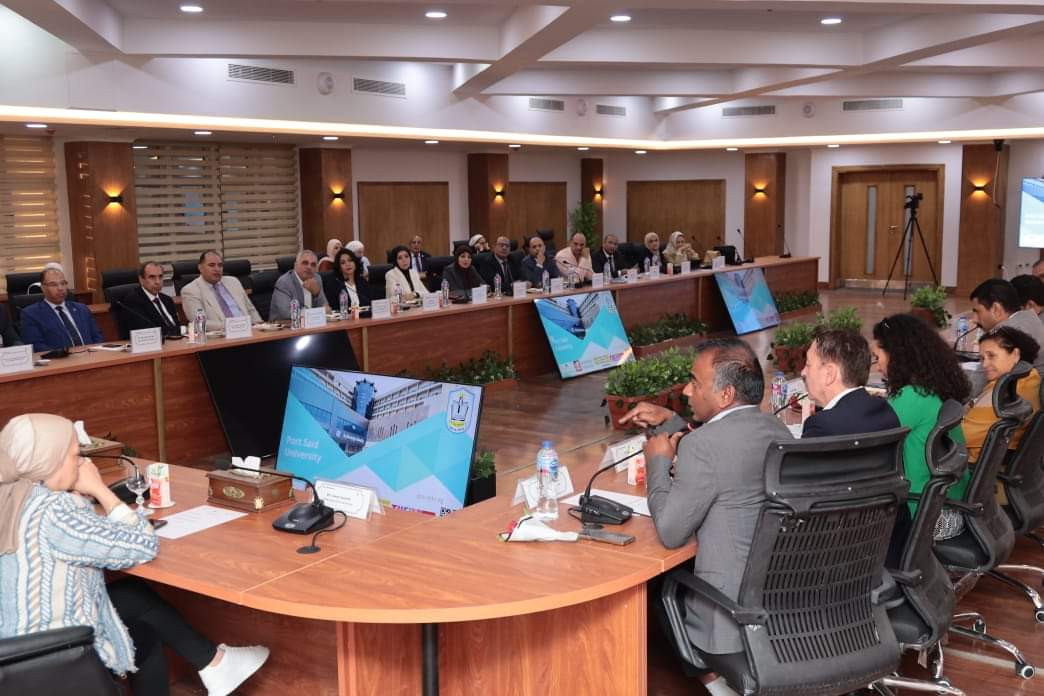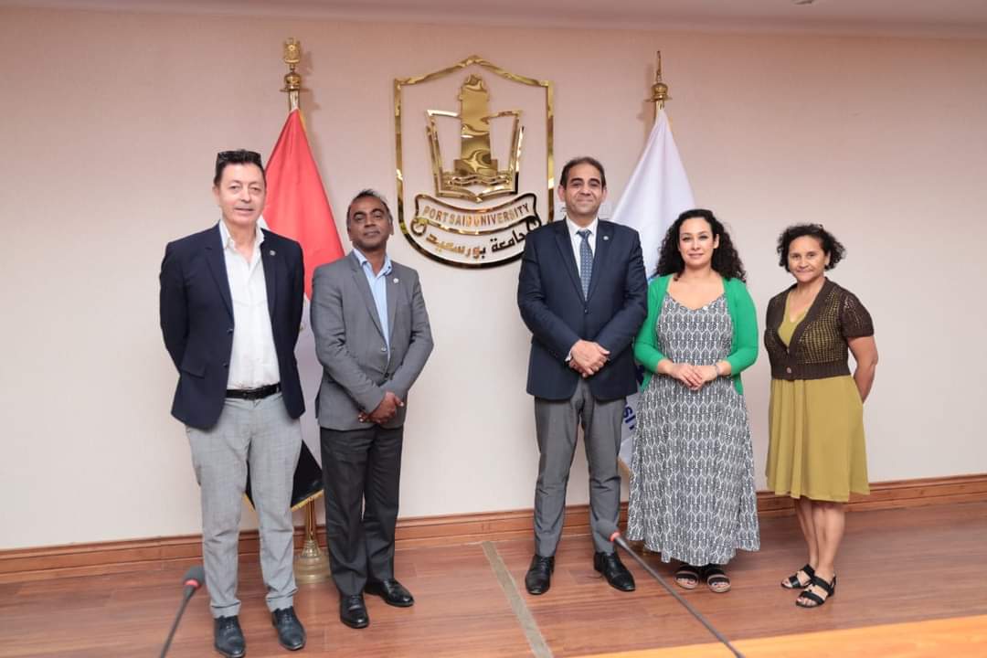وأشار السيد الاستاذ الدكتور / شريف صالح رئيس الجامعة إلى أن التعليم العالي والبحث العلمي بمصر شهد طفرة كبيرة، وذلك في إطار تنفيذ الإستراتيجية الوطنية للتعليم العالي والبحث العلمي، ومن خلال هذة الاستراتيجية تعمل جامعة بورسعيد على تحديث و تطوير برامجها الدراسية من خلال برامج جديدة بالشركة مع جامعات دولية والتى نحن بصددها اليوم ونعمل ايضا للارتقاء بمكانة الجامعة في التصنيفات العالمية، والتطوير المُستمر للمناهج الدراسية، والتى تتيح فرص للحصول على تعليم عالٍى بمستوى دولي من خلال شراكات عالمية مع كُبرى الجامعات الدولية بما يُسهم في الارتقاء بالمنظومتين التعليمية والبحثية بالجامعة .