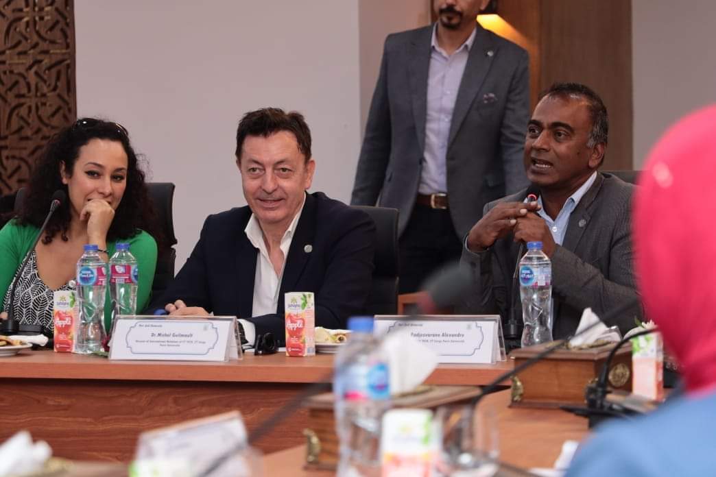 التقى السيد الاستاذ الدكتور / شريف صالح رئيس جامعة بورسعيد ، وفدا من الممثلين للعلاقات الثقافية والعلاقات الدولية من جامعة CY Tech , CY Cergy Paris University لبحث وتعزيز التعاون المُشترك والذي يضم كل من :- الأستاذ الدكتور: Radjesvarane ALEXANDRE – مدير جامعة CY Tech – السيد الأستاذ : Michel GUILMAULT – مدير قطاع العلاقات الدولية بجامعة CY Tech – الدكتورة : Besma ZEDDINI – مديرة قطاع المشروعات والابتكار جامعة CY Tech – الأستاذة : Joëlle Gury – مديرة قطاع التعاون الدولي جامعة CY Cergy Paris University في مستهل اللقاء، أكد رئيس جامعة بورسعيد على عُمق العلاقات الثنائية بين مصر وفرنسا والمتمثلة اليوم فى التعاون بين جامعة بورسعيد وجامعة، CY Tech , CY Cergy Paris University مُثمنًا زيادة التعاون الثنائي الجامعتين في مجال التعليم الجامعي، مؤكدًا على ضرورة تبادل الخبرات العلمية فيما بينهم