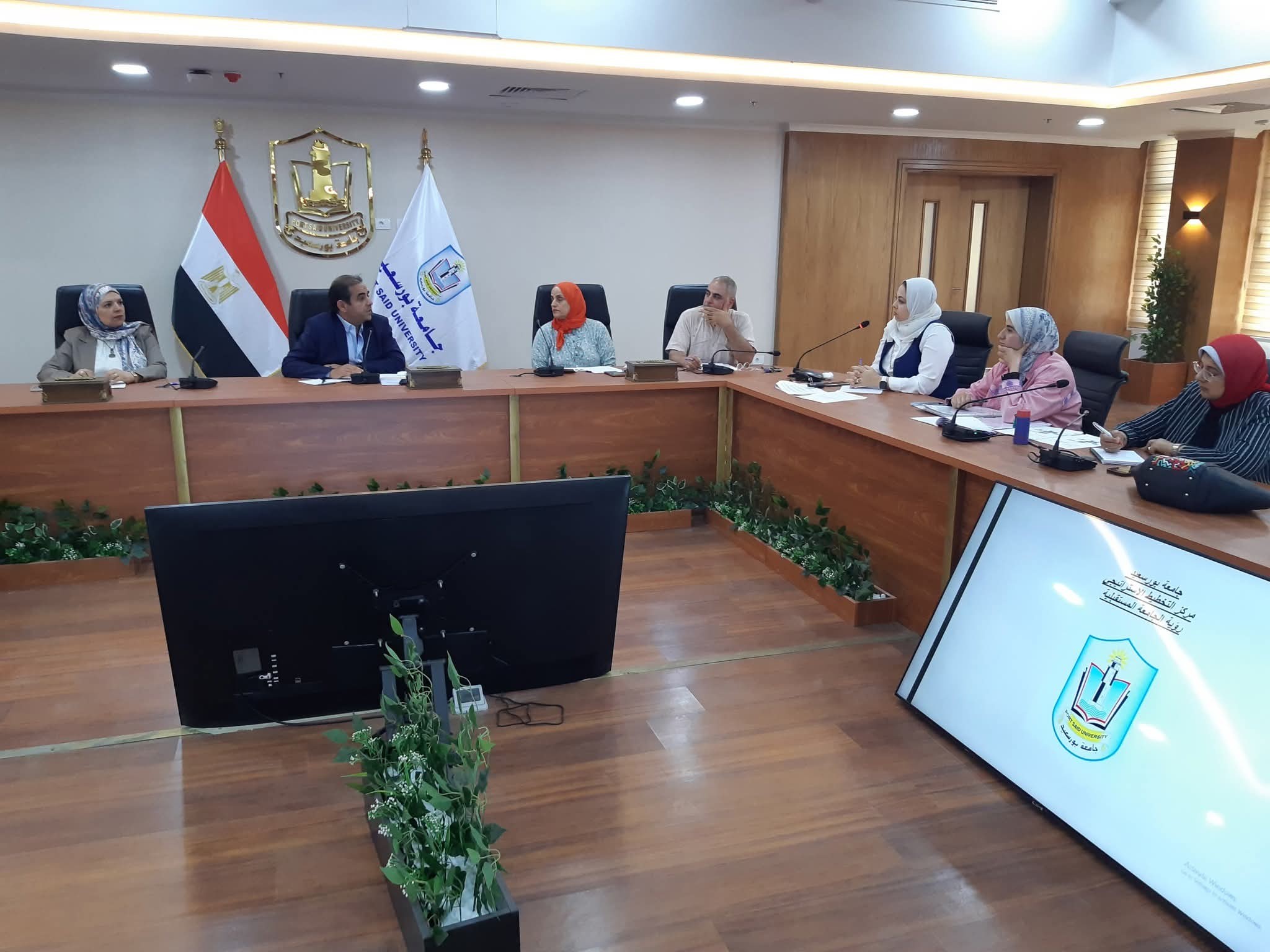 وخلال الاجتماع، استعرضت أ.م.د ريهام أبو المعاطي، مدير مركز التخطيط الاستراتيجي بالجامعة، الرؤية المستقبلية للمركز، مؤكدة أن الخطة تهدف إلى التوافق مع متطلبات المرحلة الحالية والمستقبلية، وربط أهداف الجامعة في خطة واحدة شاملة تسهم في تحقيق التنمية والتطوير بكفاءة وفعالية.