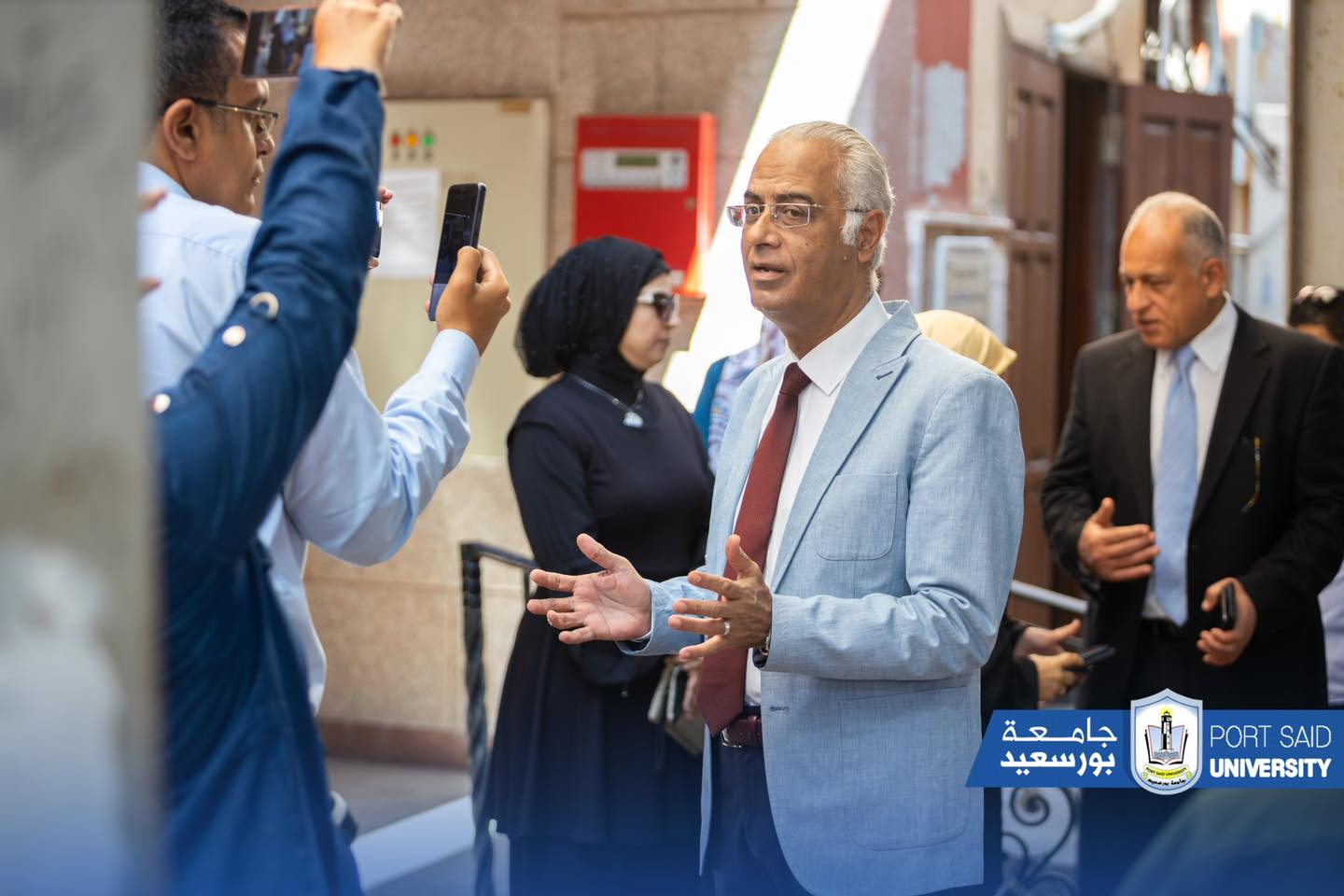 تفقد الدكتور أيمن محمد ابراهيم، رئيس جامعة بورسعيد، والدكتور جلال سالم، نائب رئيس الجامعة لشئون التعليم والطلاب، صباح اليوم الثلاثاء، امتحانات الفصل الدراسي الثاني بكلية التربية العام والتربية النوعية.