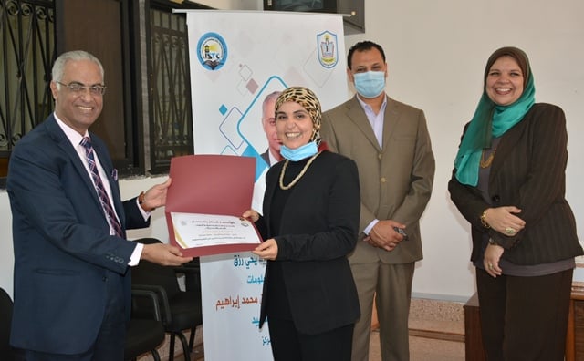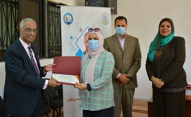 En el marco de la atención prestada al proceso educativo, el Dr. Prof. Ayman Ibrahim, rector de la universidad, acompañado por el Dr. Prof. Rawia Rizq, Jefe de la Oficina de Información, y el Dr. Amr al-Atroush, director del centro de formación, presenciaron la Inauguración de la primera formación básica de transformación digital. Asistieron a la formación los coordinadores Dr. Sameh Hereet, Dra. Madeha el-Malky, Dra. Heba el-Mogy y Dr. Ihram Farouq. La formación fue presentada por la Dra. Rania el-Kotby, el Dr. Saleh el-Shamy, el Dr. Mohamed Salem, el Dr. Amr el-Atroush, el Sr. Mohamed el-Farmawy y el Ing. Lena Ahmad. Finalmente, el Rector de la Universidad otorgó a los formadores y coordinadores los certificados TOT otorgados por el Consejo Supremo de Universidades.