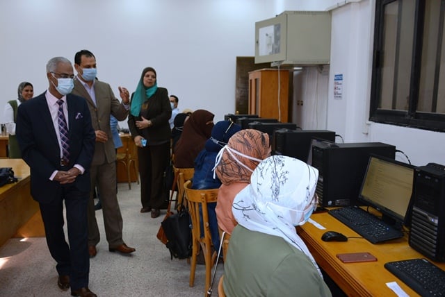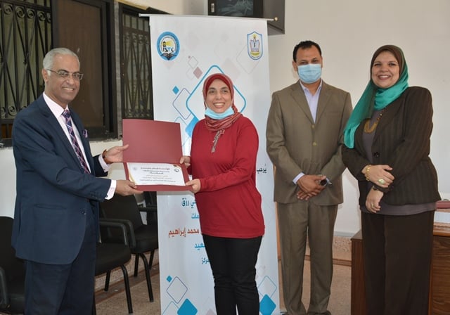 Dans le cadre de l’attention portée au processus éducatif, le Dr Prof. Ayman Ibrahim, président de l’université, accompagné du Dr Prof. Rawia Rizq, chef du bureau d’information, et du Dr Amr al-Atroush, chef du centre de formation, ont assisté à la ouverture de la première formation aux bases de la transformation numérique. La formation a été suivie par les coordinateurs le Dr Sameh Hereet, le Dr Madeha el-Malky, le Dr Heba el-Mogy et le Dr Ihram Farouq. La formation a été présentée par le Dr Rania el-Kotby, le Dr Saleh el-Shamy, le Dr Mohamed Salem, le Dr Amr el-Atroush, M. Mohamed el-Farmawy et l’Ing. Lena Ahmad. Finalement, le président de l’université a décerné aux formateurs et aux coordinateurs les certificats TOT fournis par le Conseil suprême des universités.