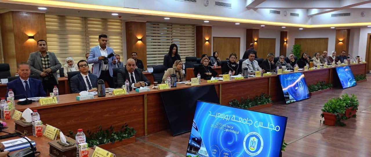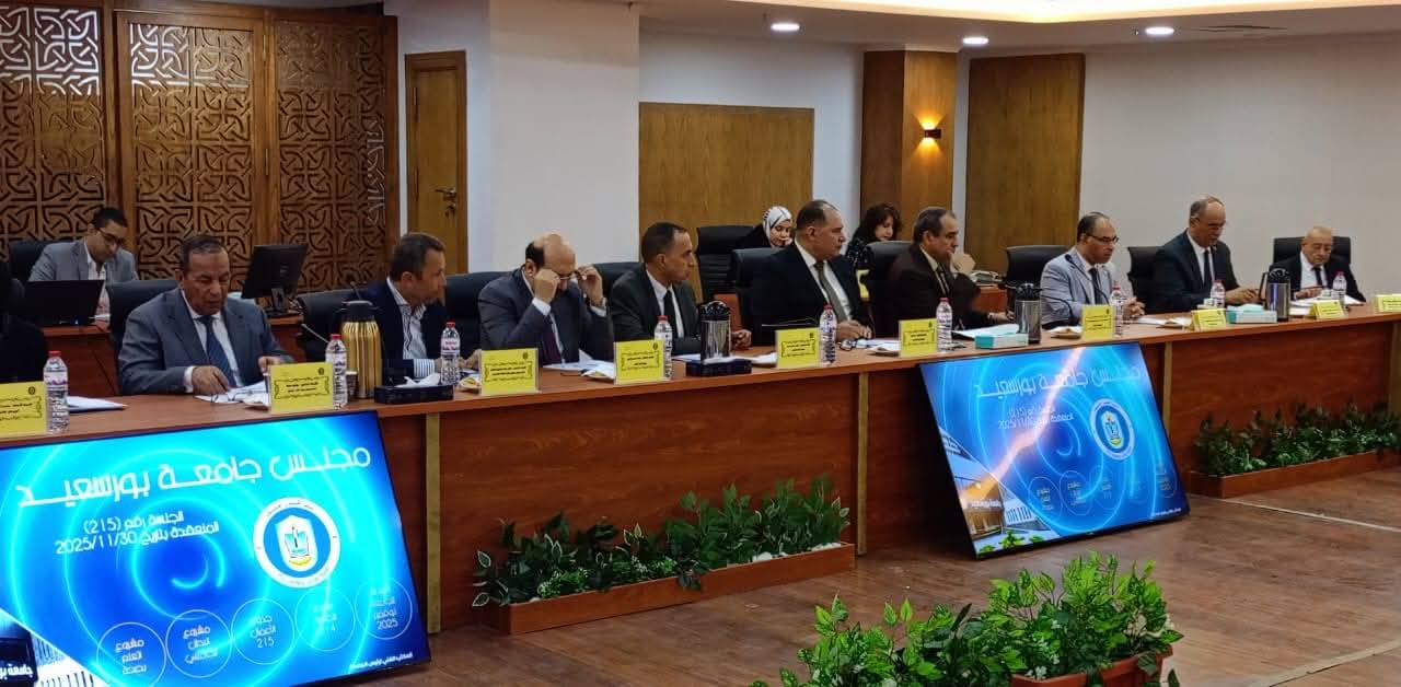 عقد مجلس جامعة بورسعيد اجتماعه الدوري صباح اليوم الأحد الموافق 30 نوفمبر 2025، في جلسته رقم (215)، برئاسة الأستاذ الدكتور شريف يوسف صالح رئيس الجامعة، وبحضور اللواء محب حبشي محافظ بورسعيد، والسادة أعضاء المجلس.