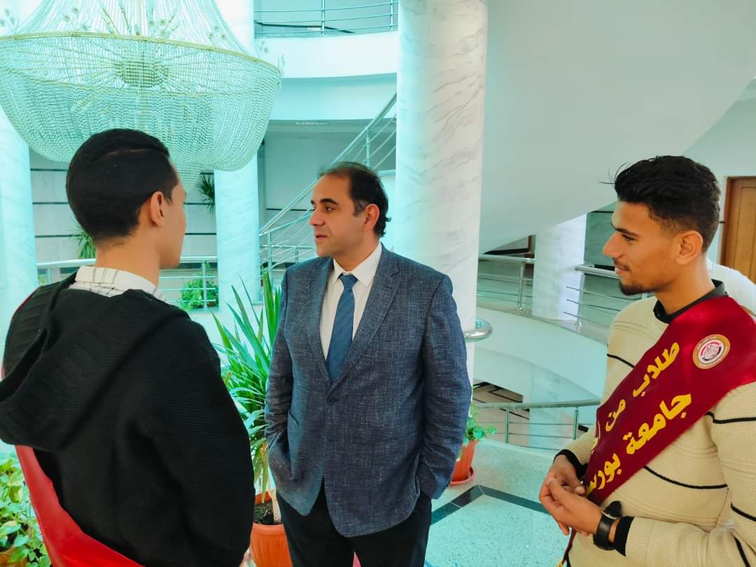 هذا وقد التقي سيادتة برئيس اتحاد طلاب الجامعة والمنسق الطلابي للاسرة والتقط الطلاب الصور التذكارية مع رئيس الجامعة و اشرف علي الفوج ا .ابراهيم مرتضي النمس مدير ادارة النشاط الاجتماعي بالجامعة.